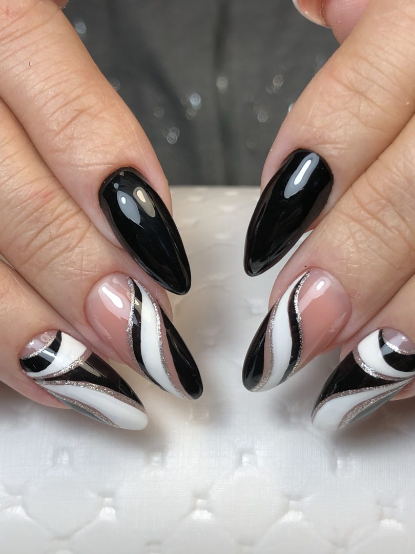 Длинные черно-белые ногти: варианты маникюра, модного в сезоне 2023-2024