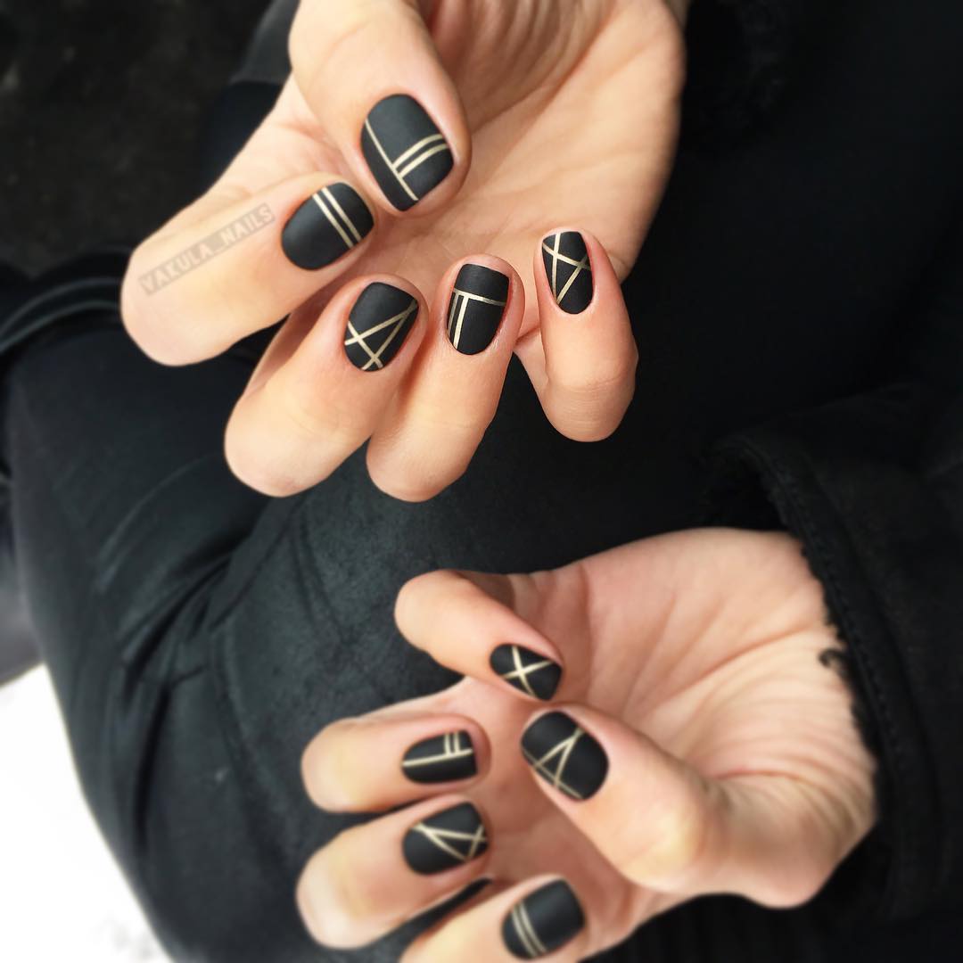 Черный маникюр средней длины может быть любым, выразителен даже однотонный, будь то глянец или матовое покрытие, он не будет смотреться скучным из-за своей нетривиальности.