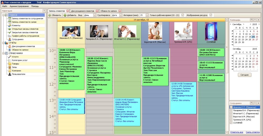 Эта система для парикмахерских умеет: формировать отчеты, присылать уведомления, создавать рассылки, обеспечивать фильтрацию информации, создавать списки задач, а также многое другое.