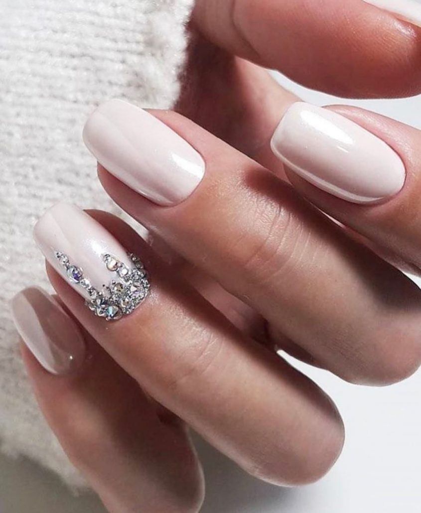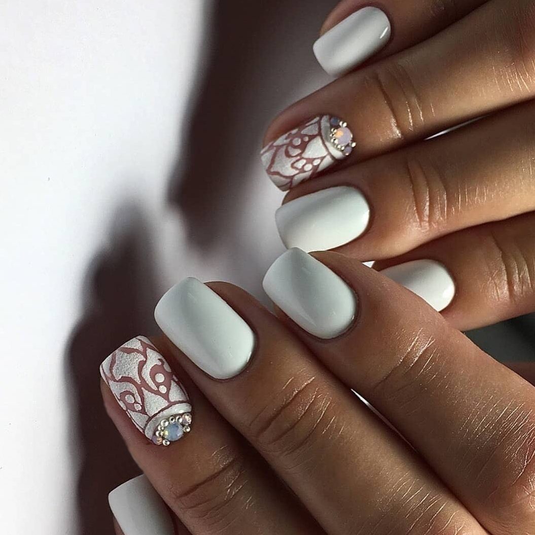 Белый лак подчеркнет ноготки любой длины. Это практически беспроигрышный вариант. Плюс если к нему добавить блесток на несколько пальчиков, или нанести рисунок, будет просто шикарный вариант праздничного дизайна.