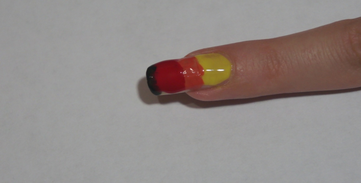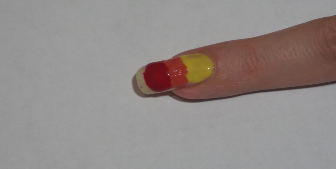 - На ногтевой пластине сделайте 3 капли лаком цвета, выбранного для рисования розы.