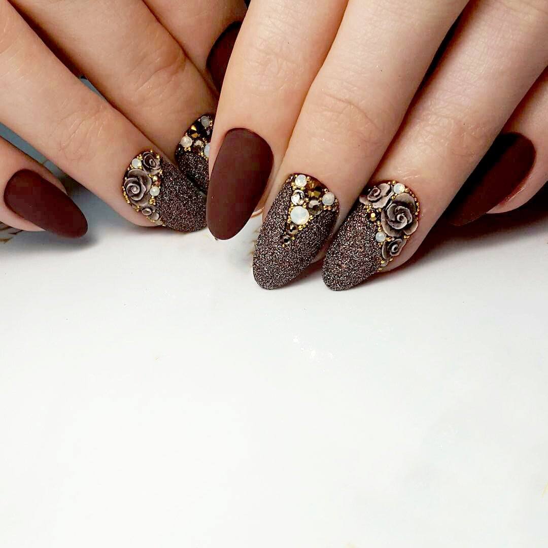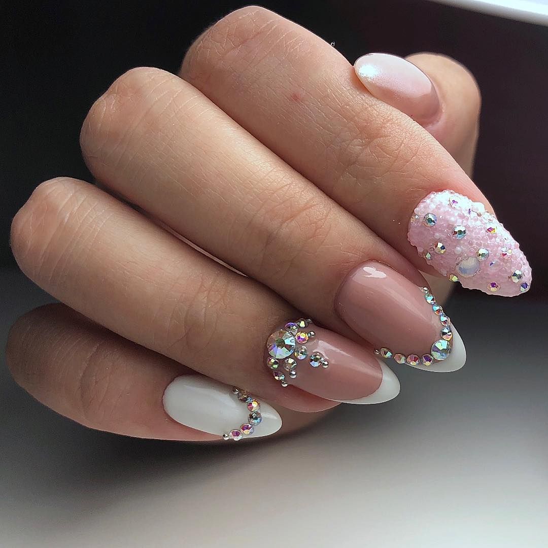 Добавьте в свой маникюр больше игры света при помощи красивейших кристаллов. Уже доказано, что лучи, преломляющиеся на множественных гранях, ассоциируются с роскошью и праздником в сознании человека. Все любят драгоценные камни и стразы хорошего качества. Разноцветные кристаллы и стразы сделают узор на ногтях праздничным и оригинальным.