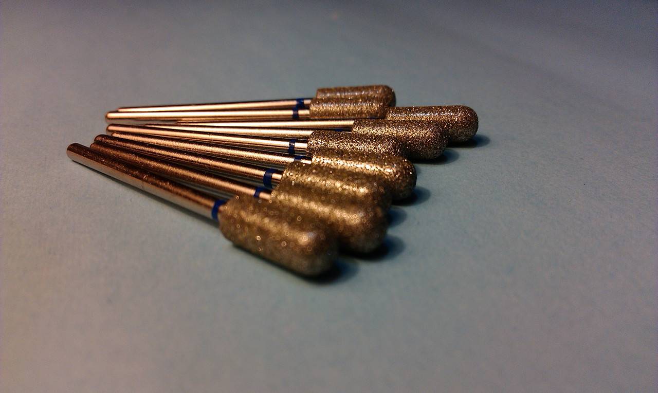 Алмазные фрезы внешне напоминают металлическую ножовку, которую можно встретить в быту. Для начинающих они опасны, поэтому алмазное напыление используют в работе только профессионалы. Необходимо тонко чувствовать аппарат, чтоб уверенно пользоваться всеми скоростями и не ранить себя во время обработки.