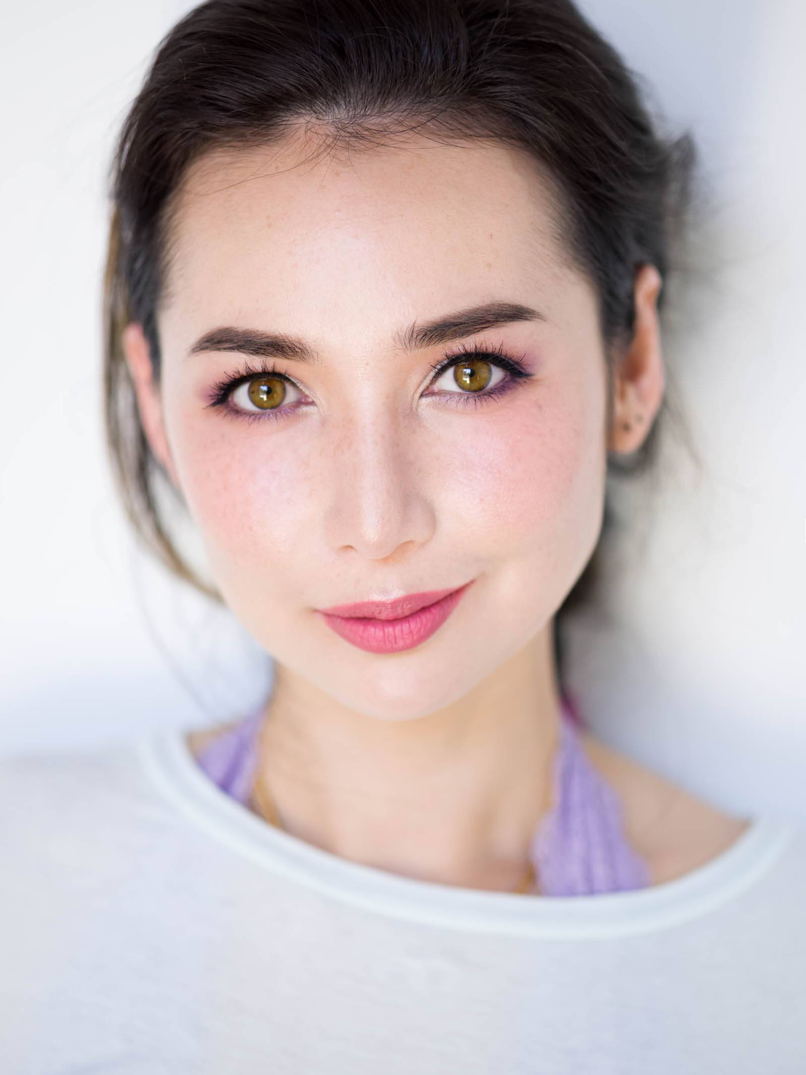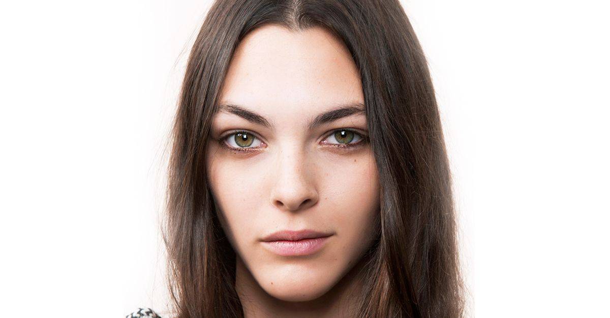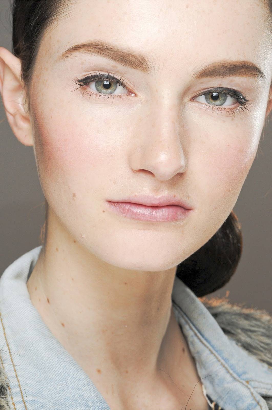 Пример легкого, но очень стильного дневного макияжа для серо-зеленых глаз. Прекрасно смотрится сияющая идеальная кожа.