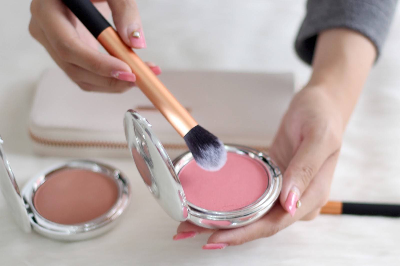 Румяна могут быть персиковыми или песочными, золотистыми. Но не должно быть ничего яркого, задача румян только слегка подчеркнуть скулы и контур. Румяна и помада должны совпадать по тону.
