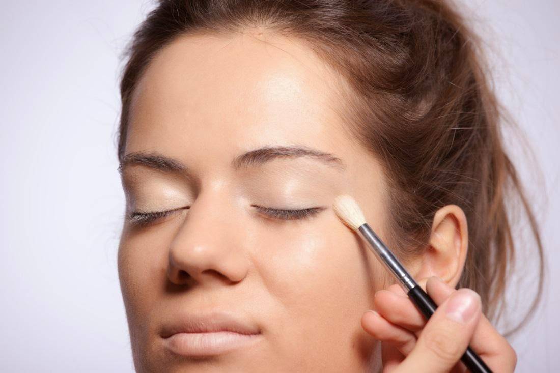 Шаг 2: С внешней стороны по контуру наносят тёмные тени, предпочтительно коричневых оттенков на несколько тонов темнее цвета глаз, и слегка их растушёвывают кисточкой.