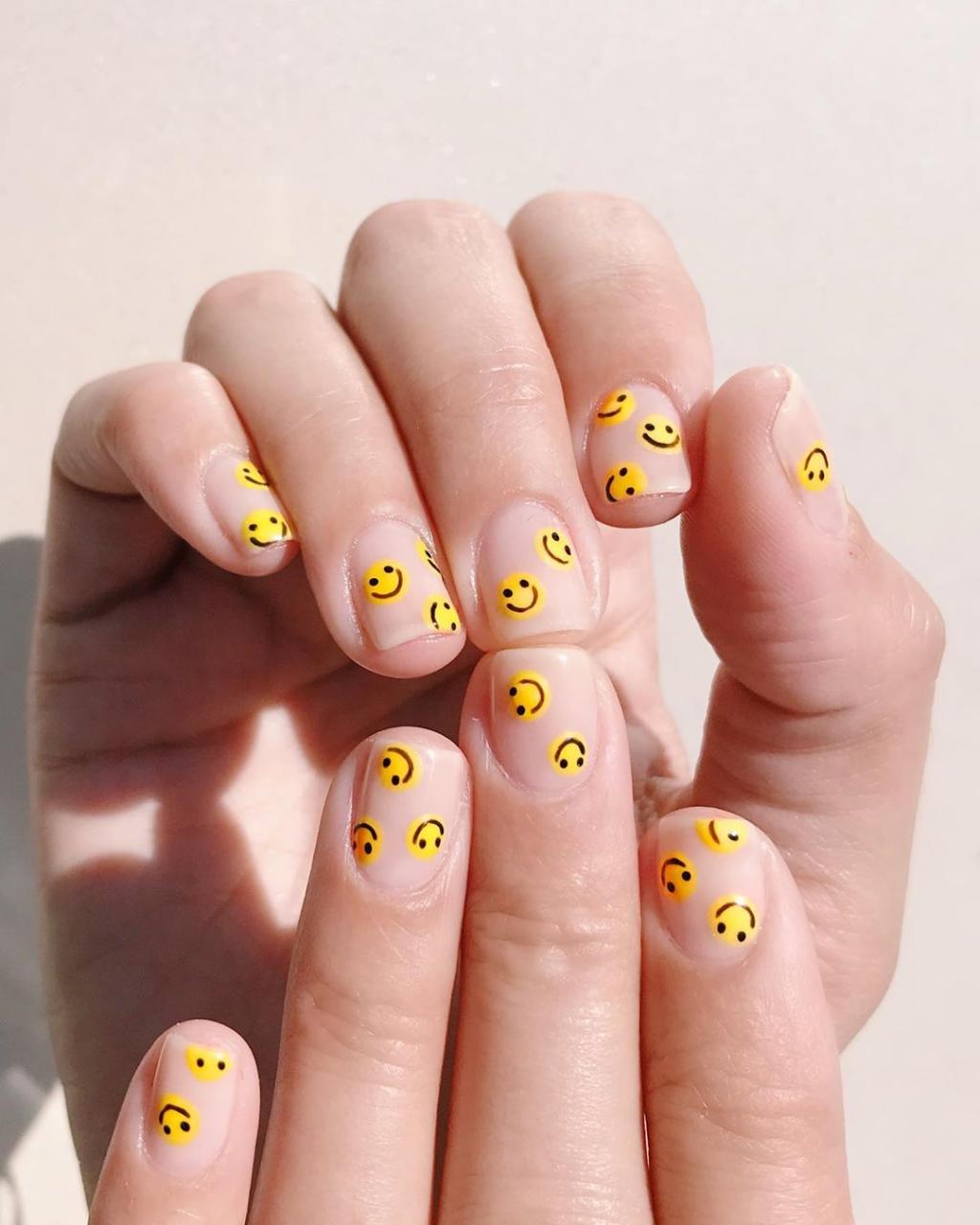 - На каждую ногтевую пластину наносится разная мордочка героя с какой-либо эмоцией.