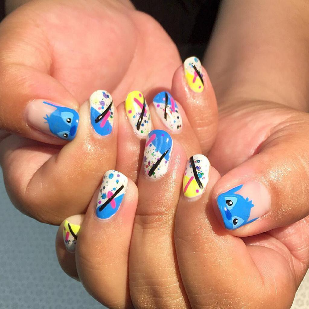 Поклонниц просмотра мультфильмов порадует маникюр с изображениями любимых персонажей. На каждом ногте может находиться разный герой.