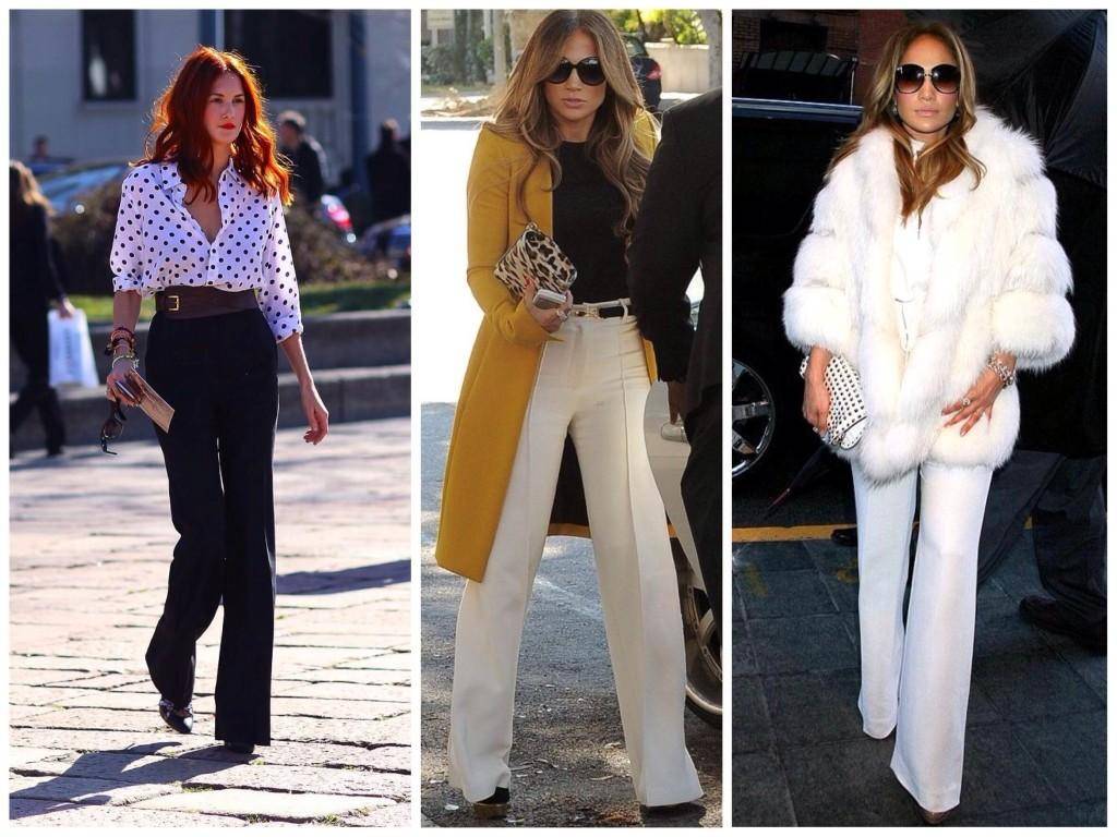 Например, с широкими брюками типа палаццо и с удлиненными кюлотами. Последний вариант подойдет высоким девушкам, так как кюлоты могут еще больше уменьшать рост.