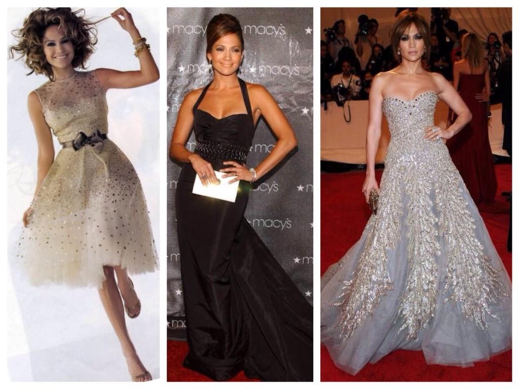 Платья могут быть также различны – длинными, короткими, обтягивающими, «воздушными».Самый подходящий вариант – пышная юбка и открытый вверх. Следует подчеркивать талию ремешком. Подходят различные расцветки, фактуры, фасоны.