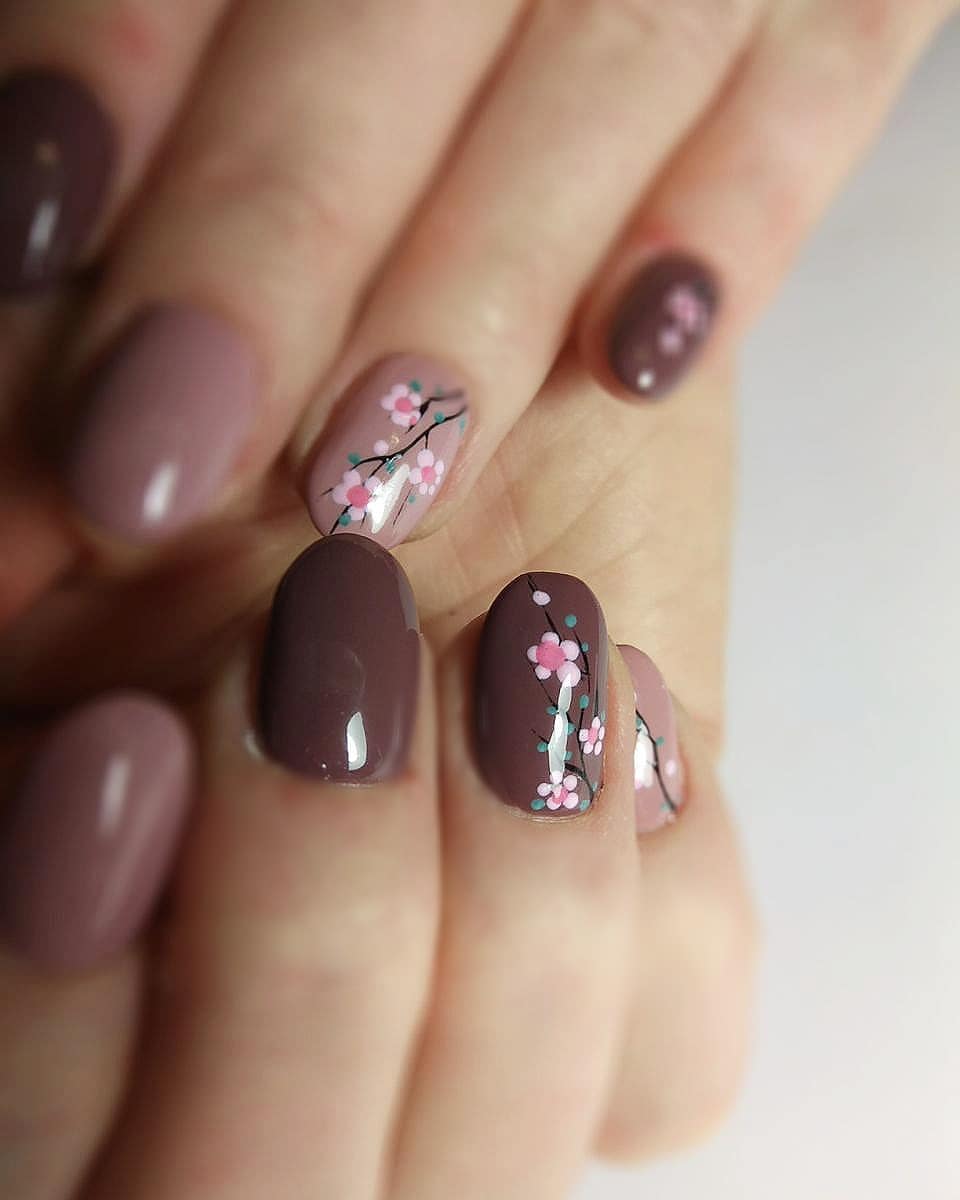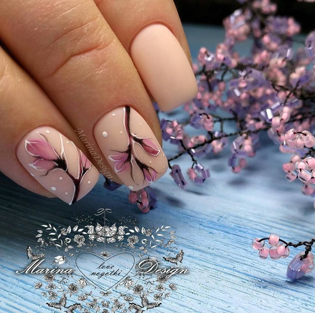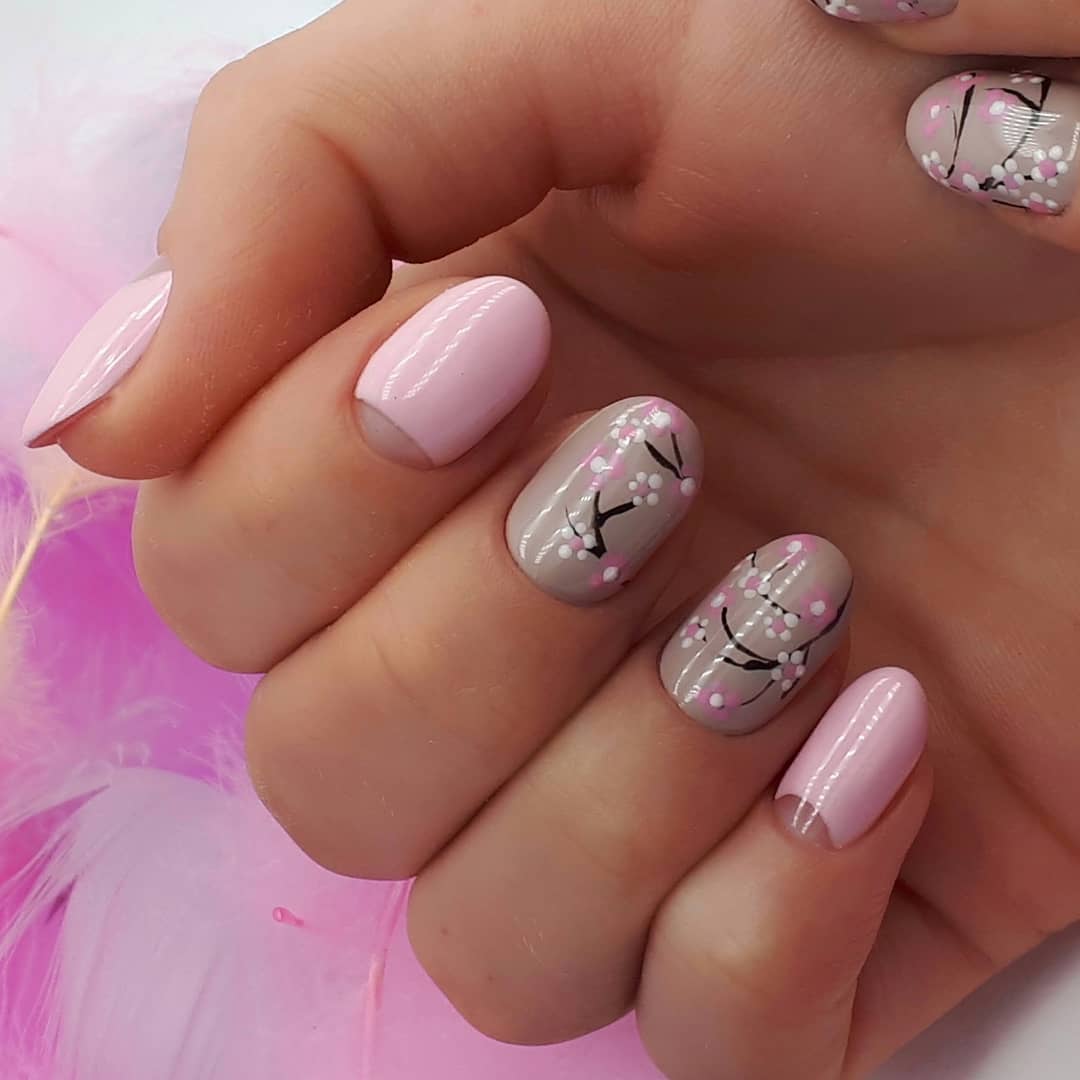 Веточка сакуры на ногтях отлично сочетается с такими оттенками: