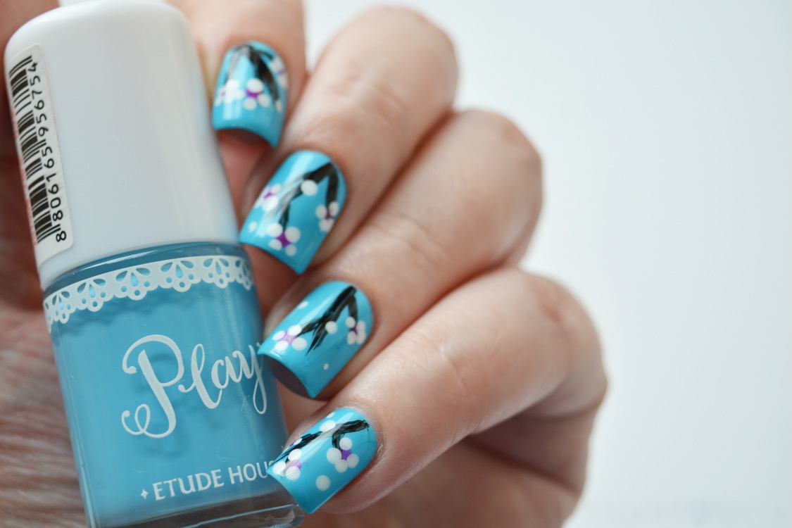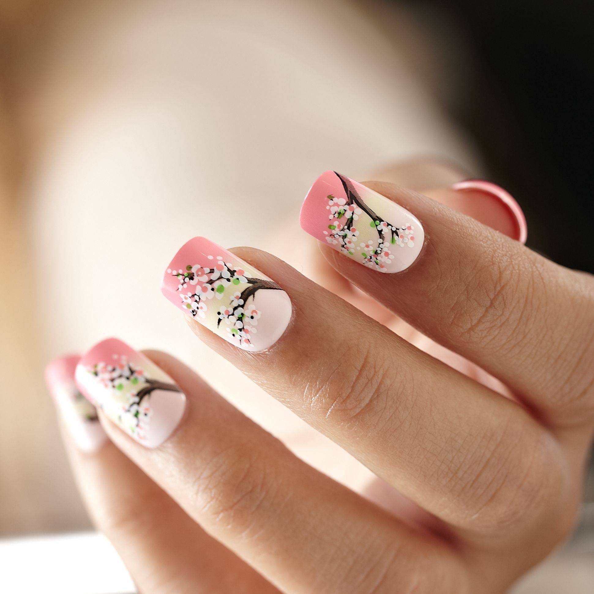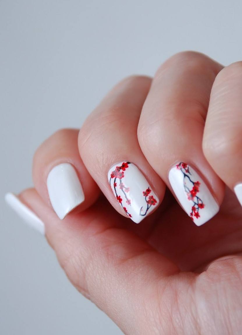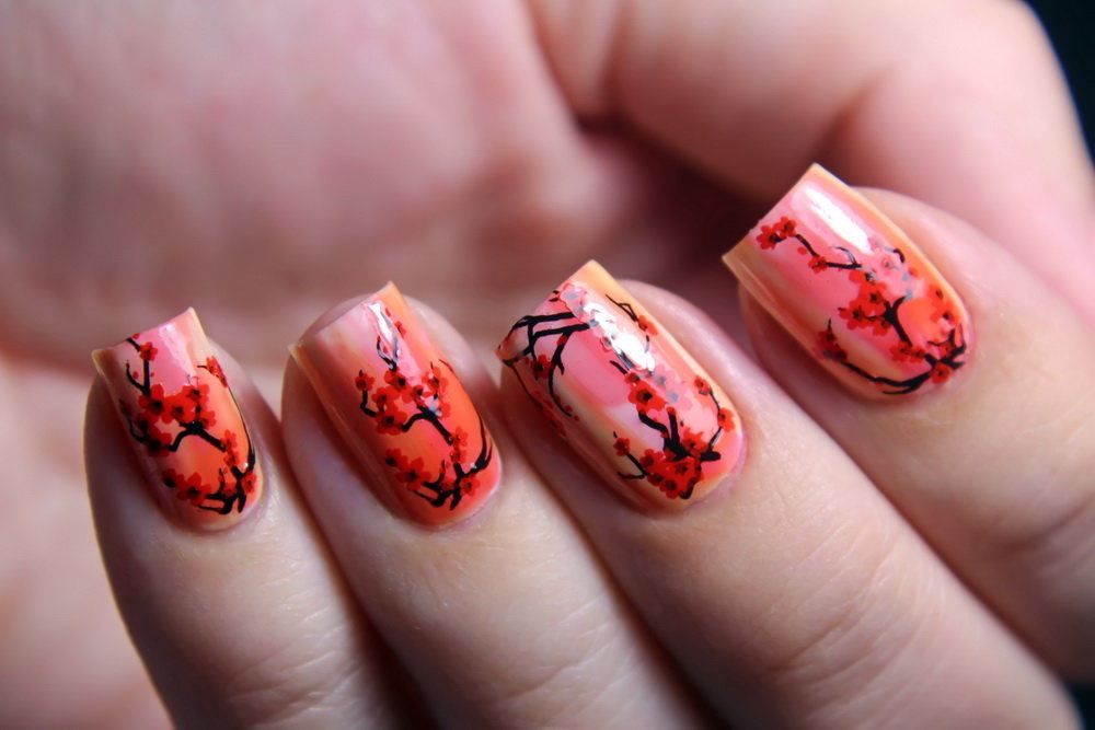 маникюр, 10 фото дизайна, рисунки веточки с цветами, с иероглифами