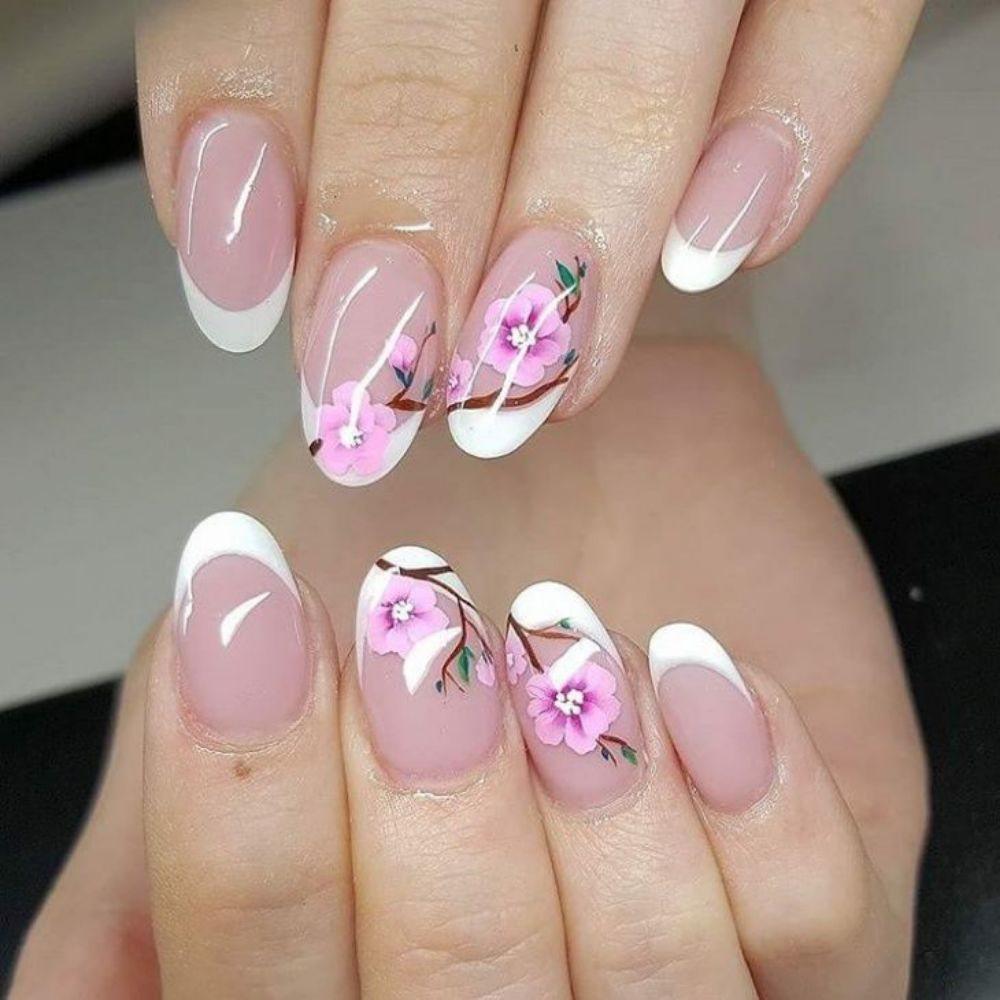 Веточки сакуры на ногтях – новинка в нейл-арте.Чтобы сделать маникюр еще более оригинальным, мастера предлагают экспериментировать: сделать в сочетании с классическим френчем или градиентом.
