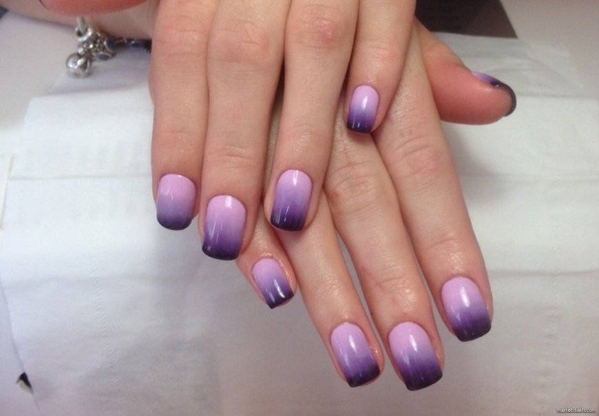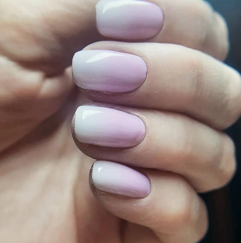 Так же можно использовать дизайн в стиле Омбре. Для его выполнения необходимо нанести основной цвет лака, просушить его. В специальной посуде смешать края лака основного цвета и контрастного.