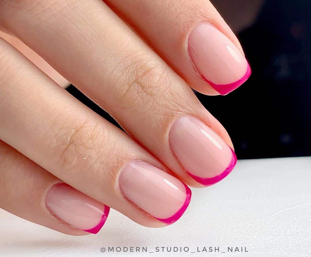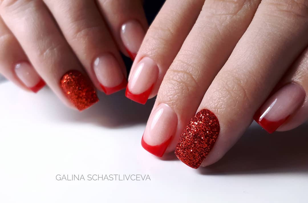 Короткий френч — замечательная основа для создания дополнительного декора. Красиво смотрится как простой классический френч со стразами, так и различные оттенки лака на кончиках ногтей.