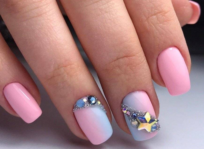Чтобы сделать маникюр ещё красивее, используйте такие виды декора, как различные стразики, акриловая пудра и градиентный дизайн, который ещё называют омбре.