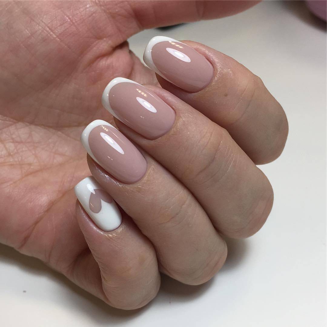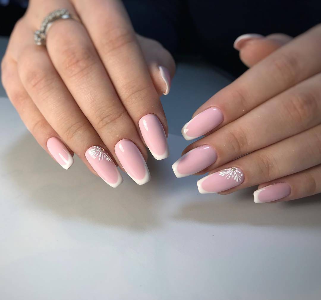 - Классический французский маникюр представляет собой белый кончик и розовое или бежевое основание ногтевой пластины.