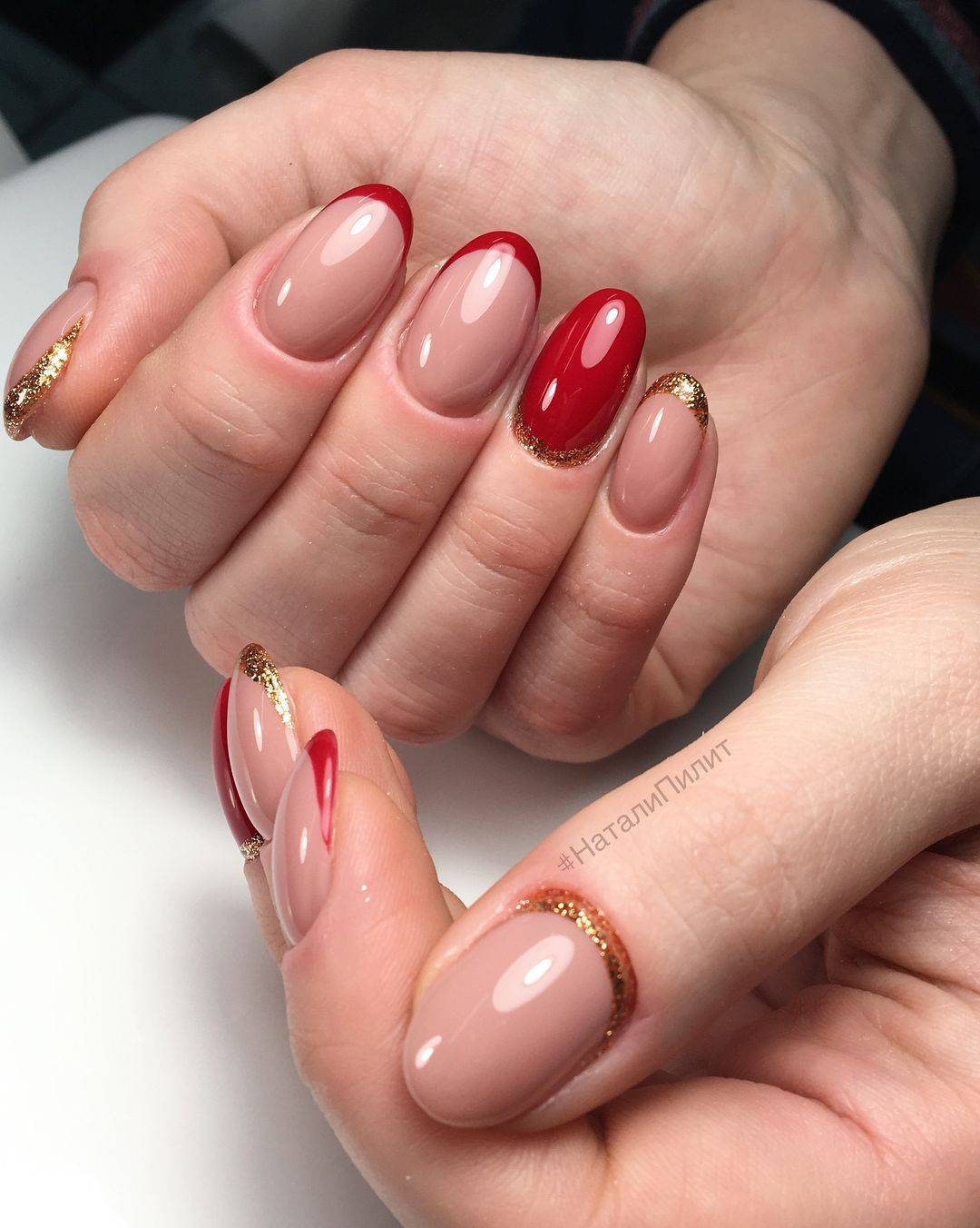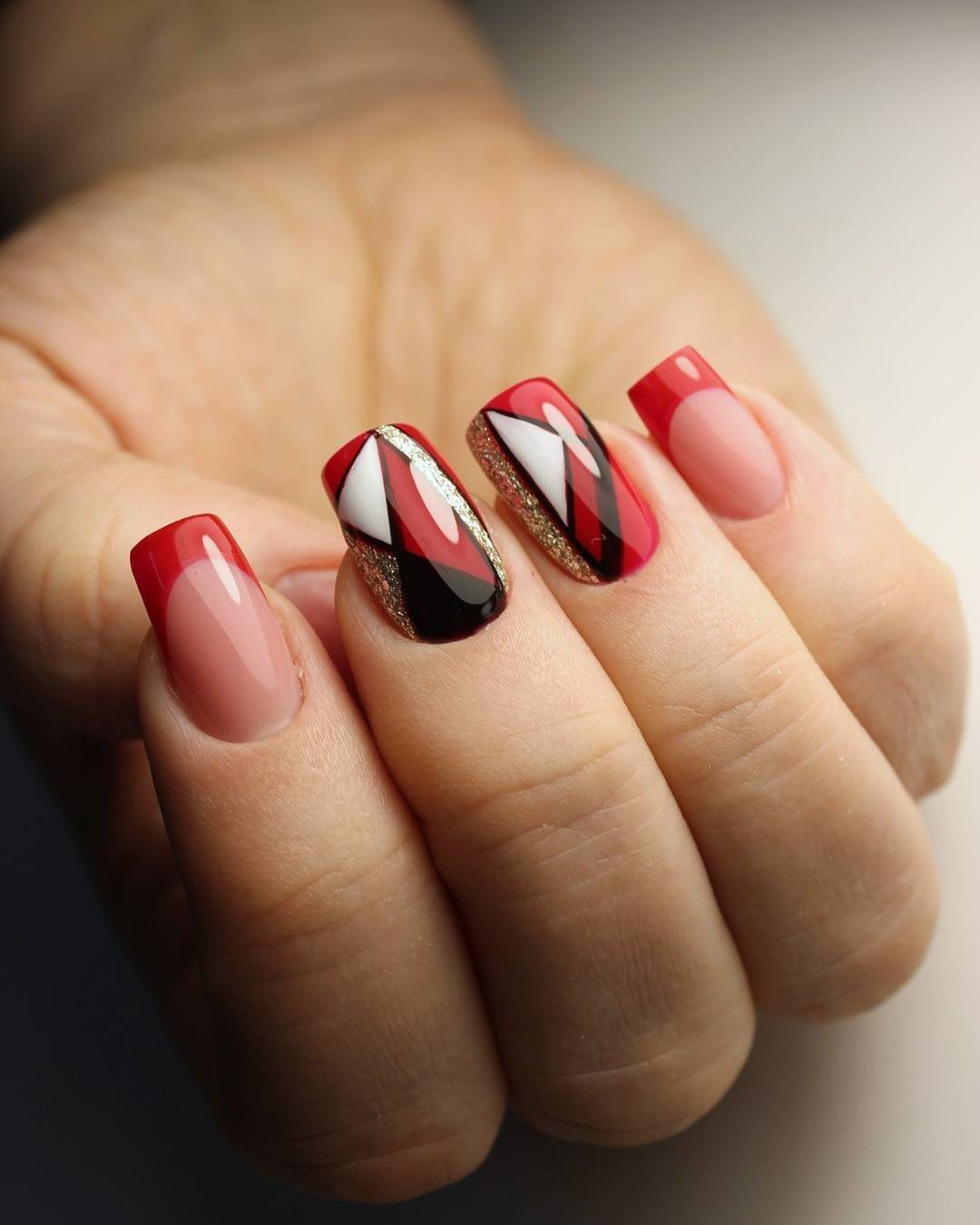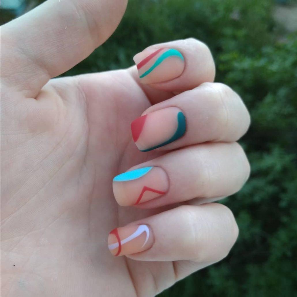 Сочетания красного, розового, зеленого и других цветов могут поместиться даже на коротких ноготках