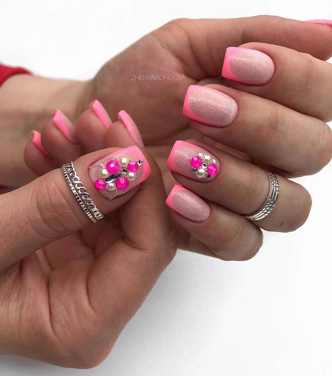 Дизайн ногтей 2021 позволяет добавлять на ноготь широкий ассортимент украшений. Это могут быть стразы (сваровски или обычные), слайд – дизайн, ручную роспись, наклейки, блестки, втирки и т.д. Вариант дизайна уже зависит от умений мастера и фантазии клиента.