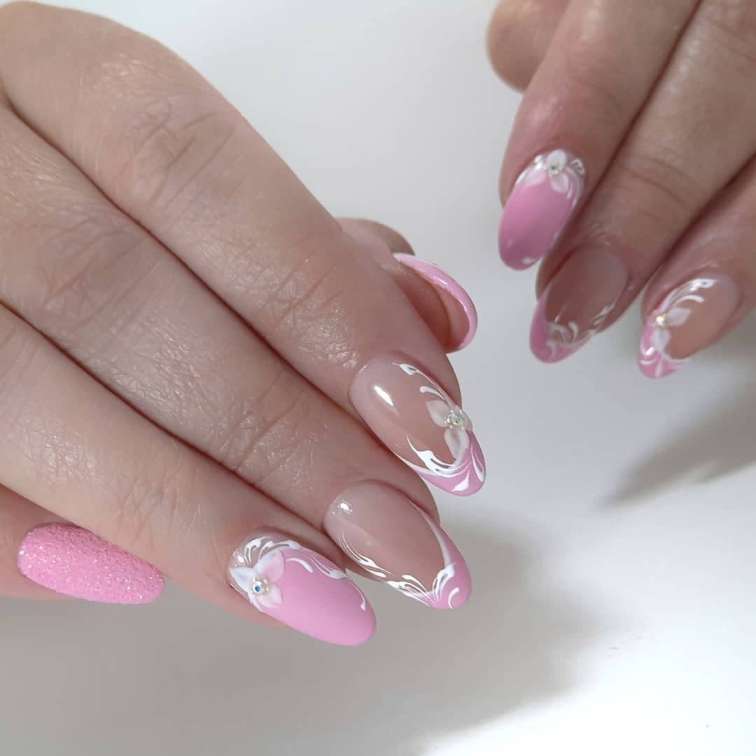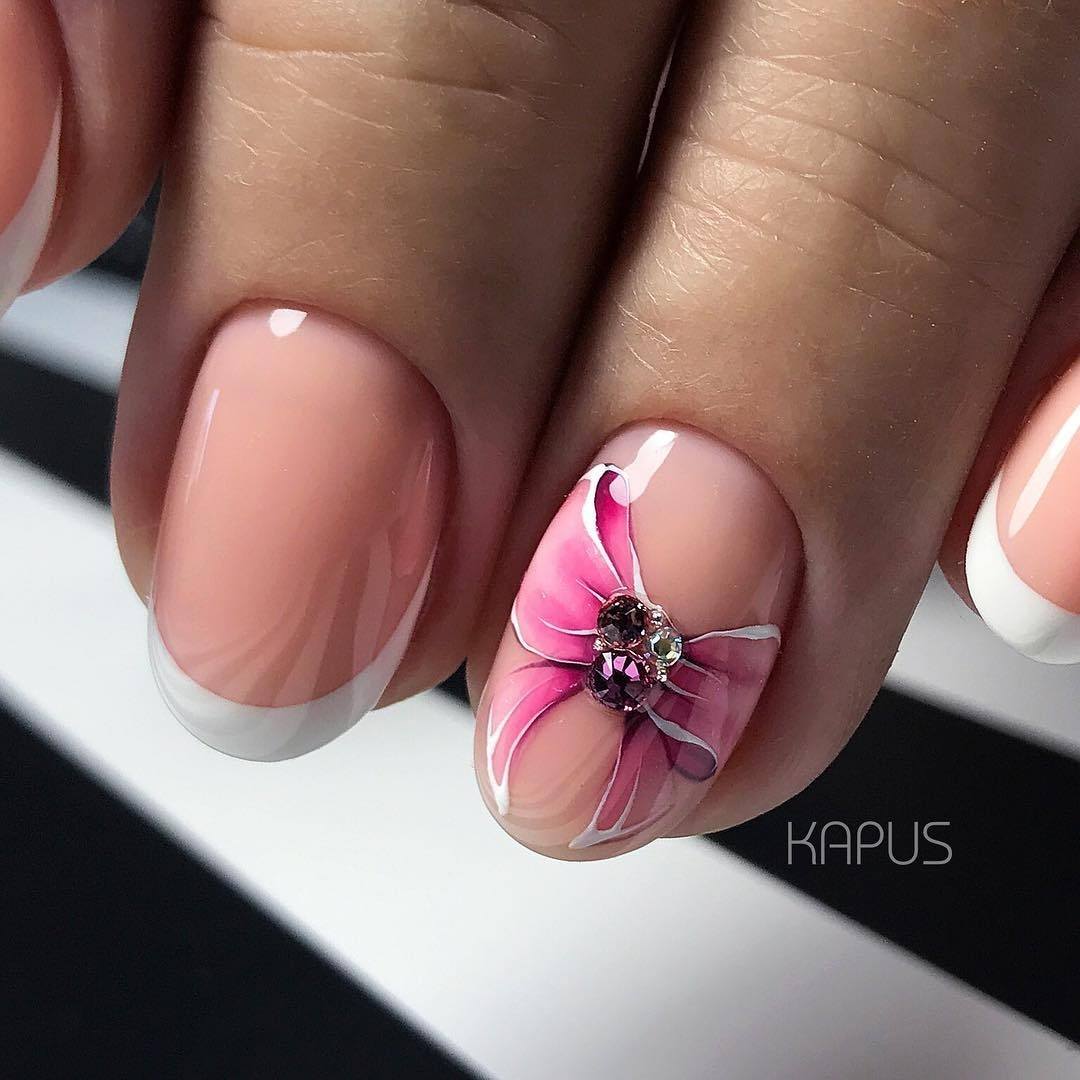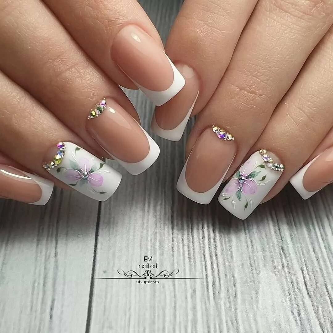Сочетание цветочных бутонов с французским маникюром
