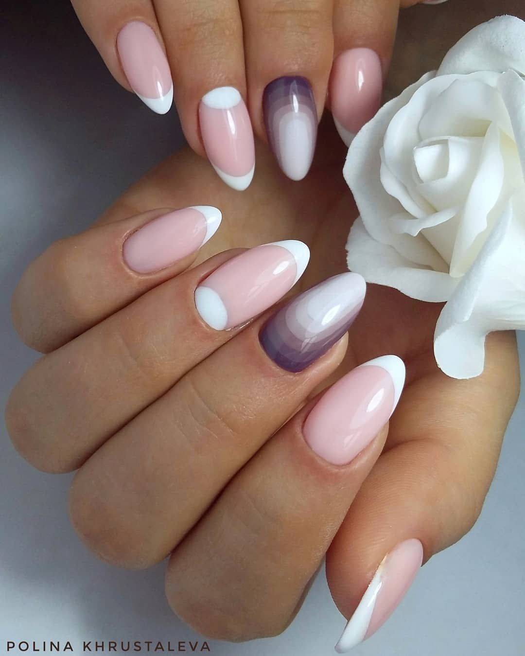 Френч на длинные овальные ногти