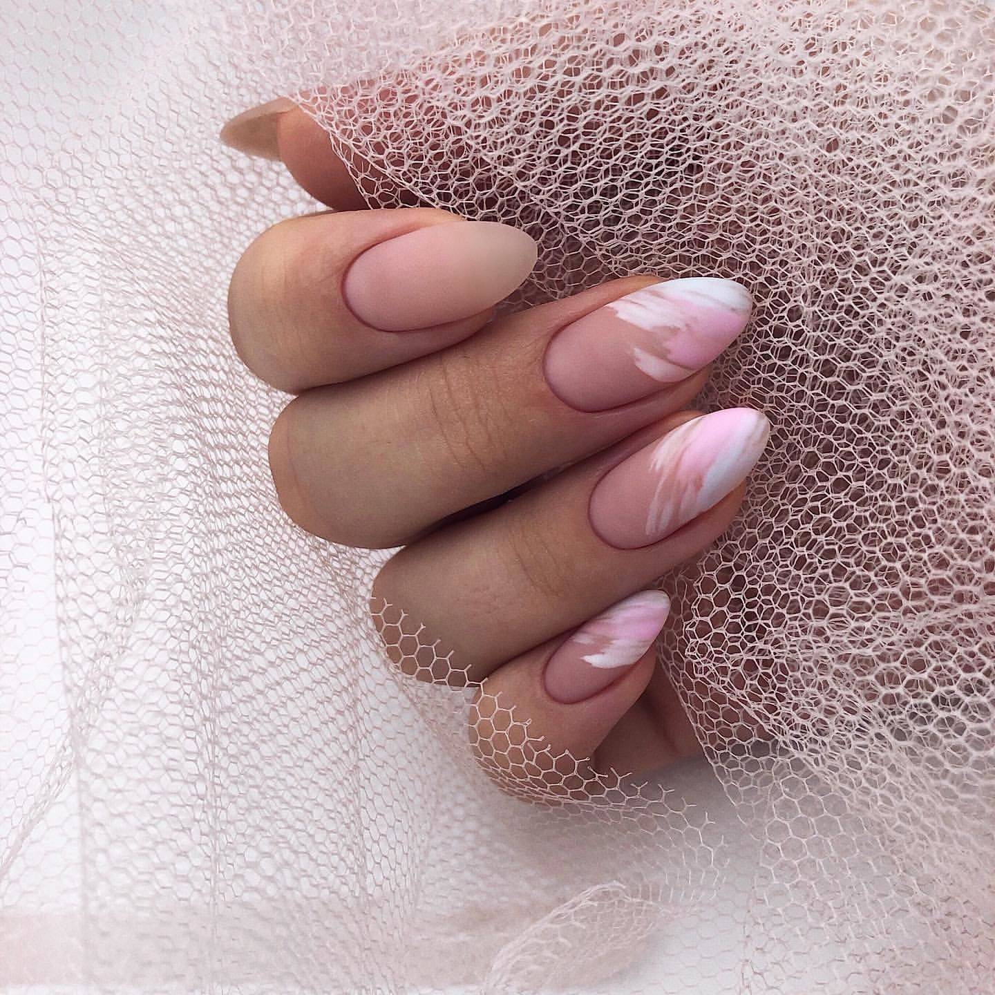 Достигается при помощи постепенных скосов с обеих сторон от центра ногтевой пластины. Миндалевидная форма пользуется большой популярностью среди девушек и женщин любого возраста. Так ноготки визуально выглядят длиннее и тоньше.