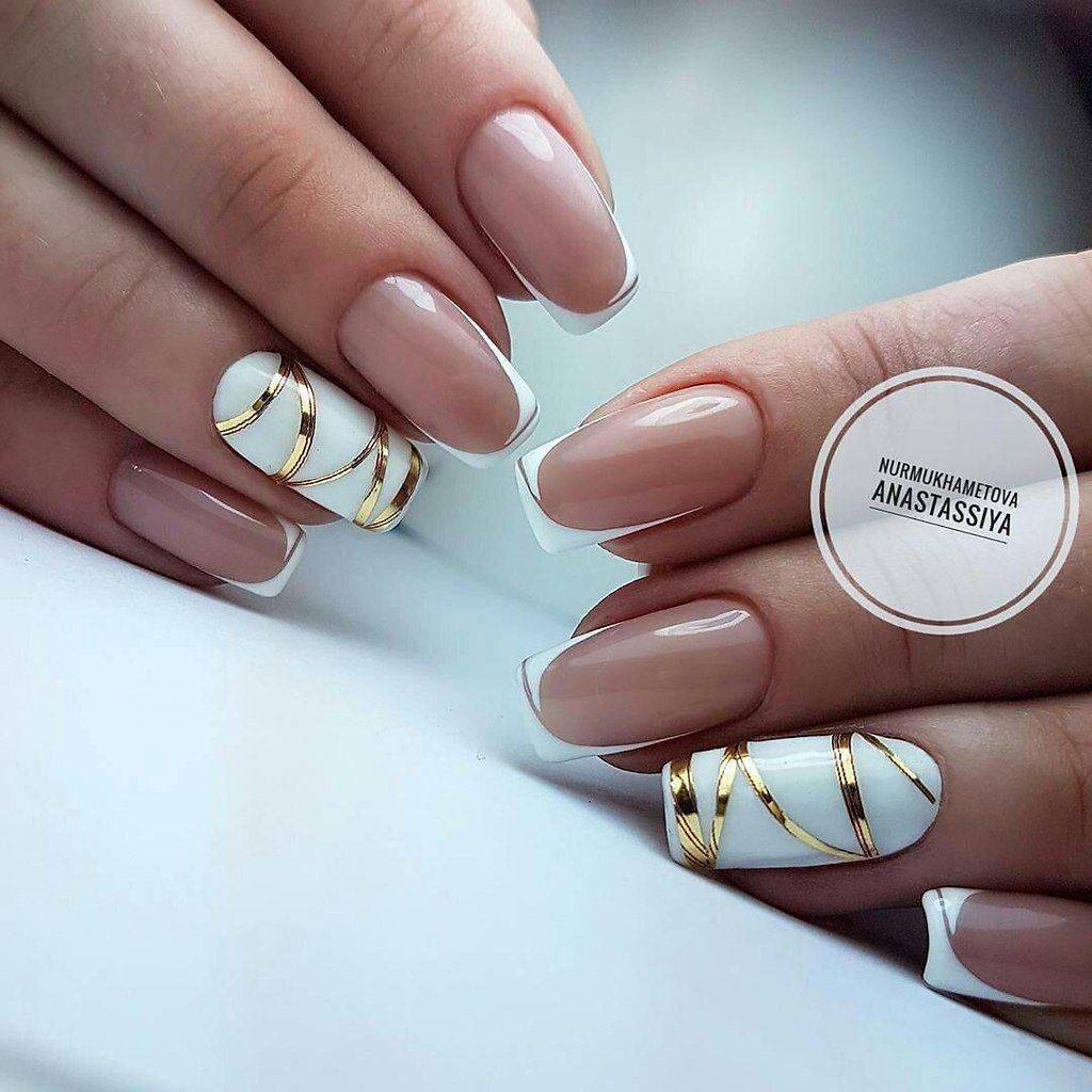 Еще она вечная ценность, точнее драгоценность – золотые и серебряные цвета. Если выполнить в них френч, это будет смотреться стильно и дорого.