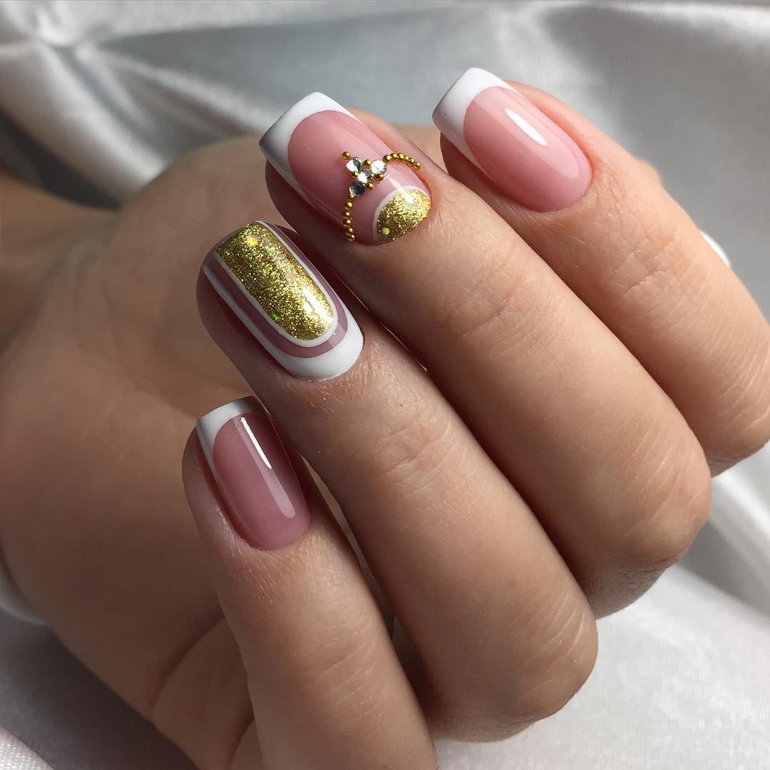 Модный френч с дизайном и блестками