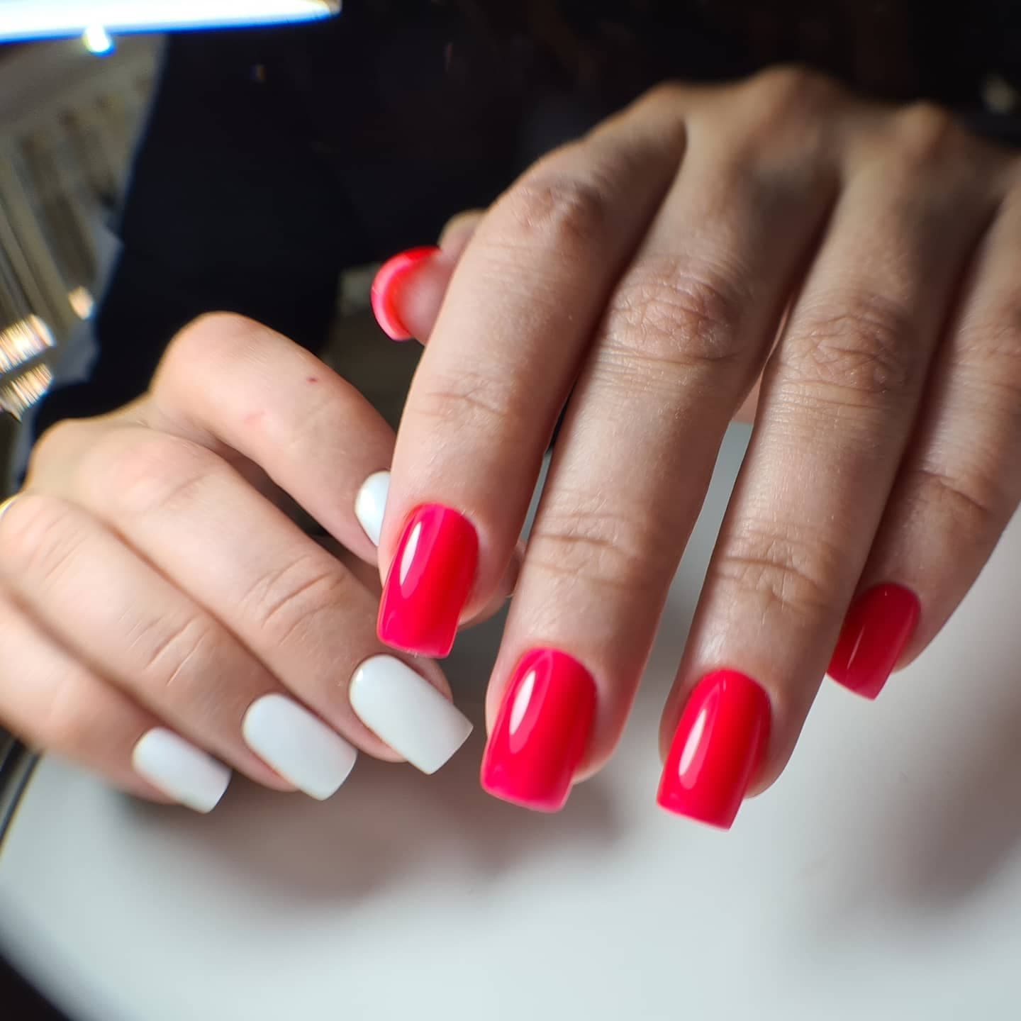 Модный маникюр красный с белым: