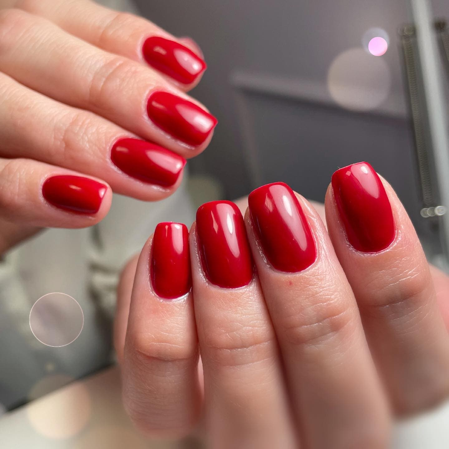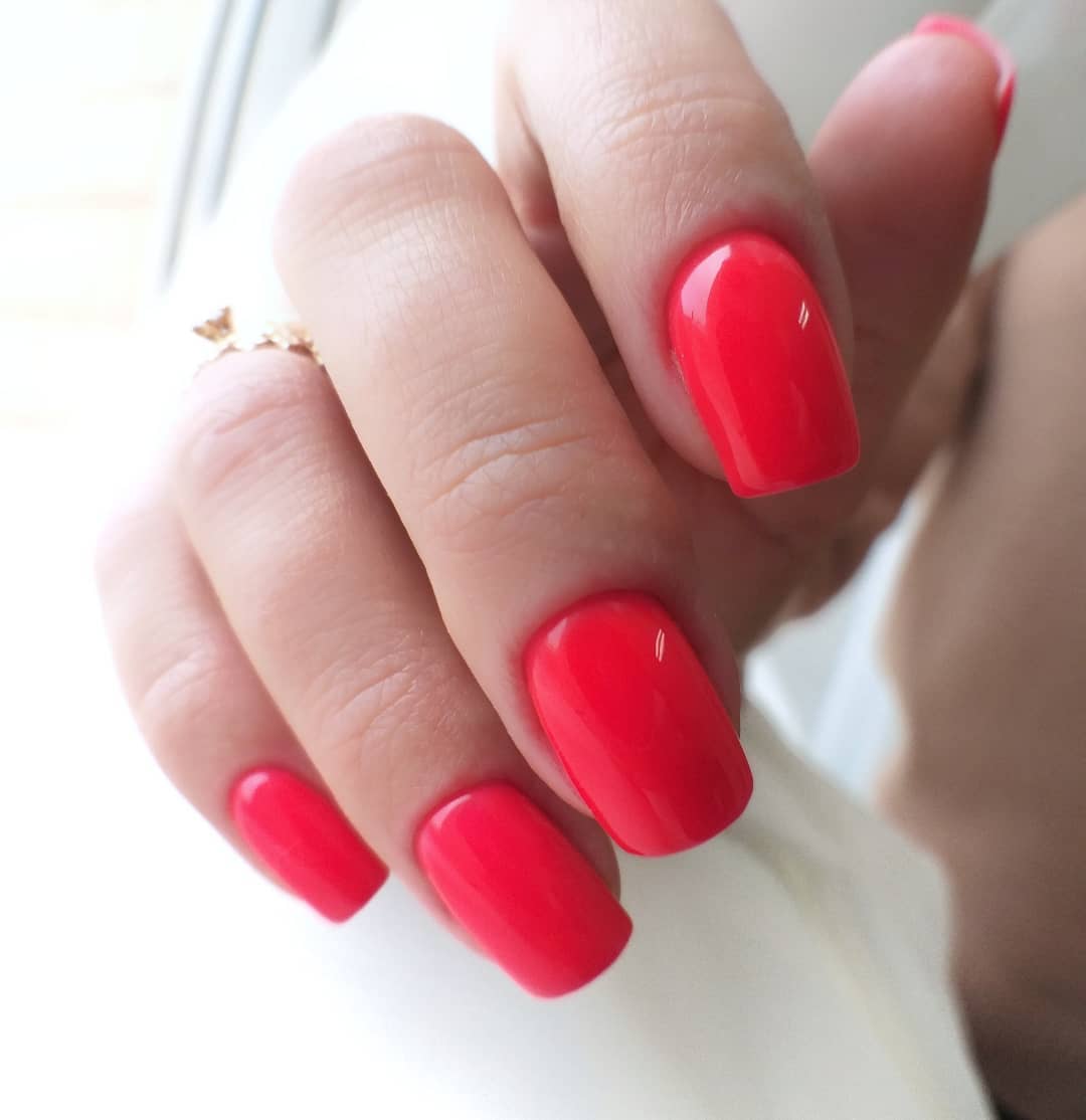 Красный гель-лак на коротких ногтях, фото