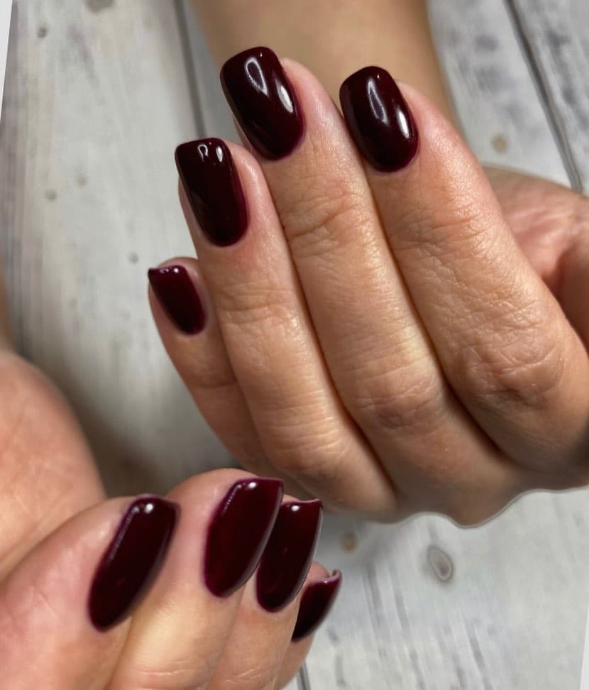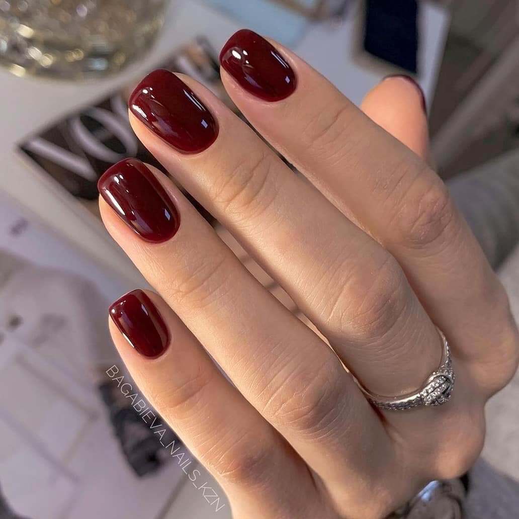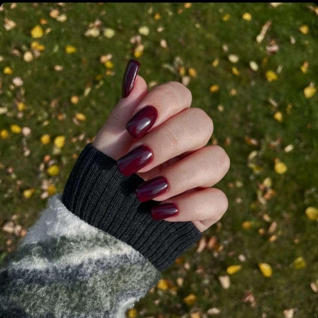 Актуальная длина и форма для бордового маникюра