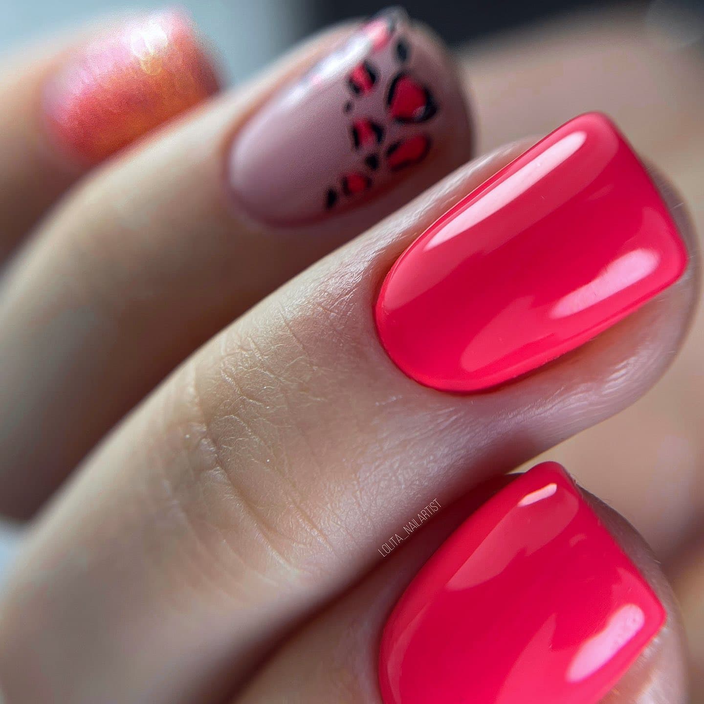 Модный красно-розовый маникюр гель-лаком