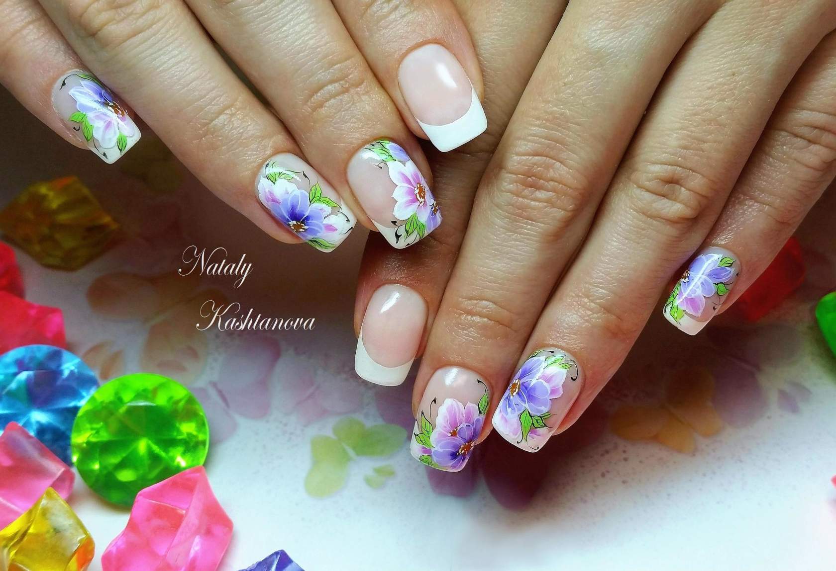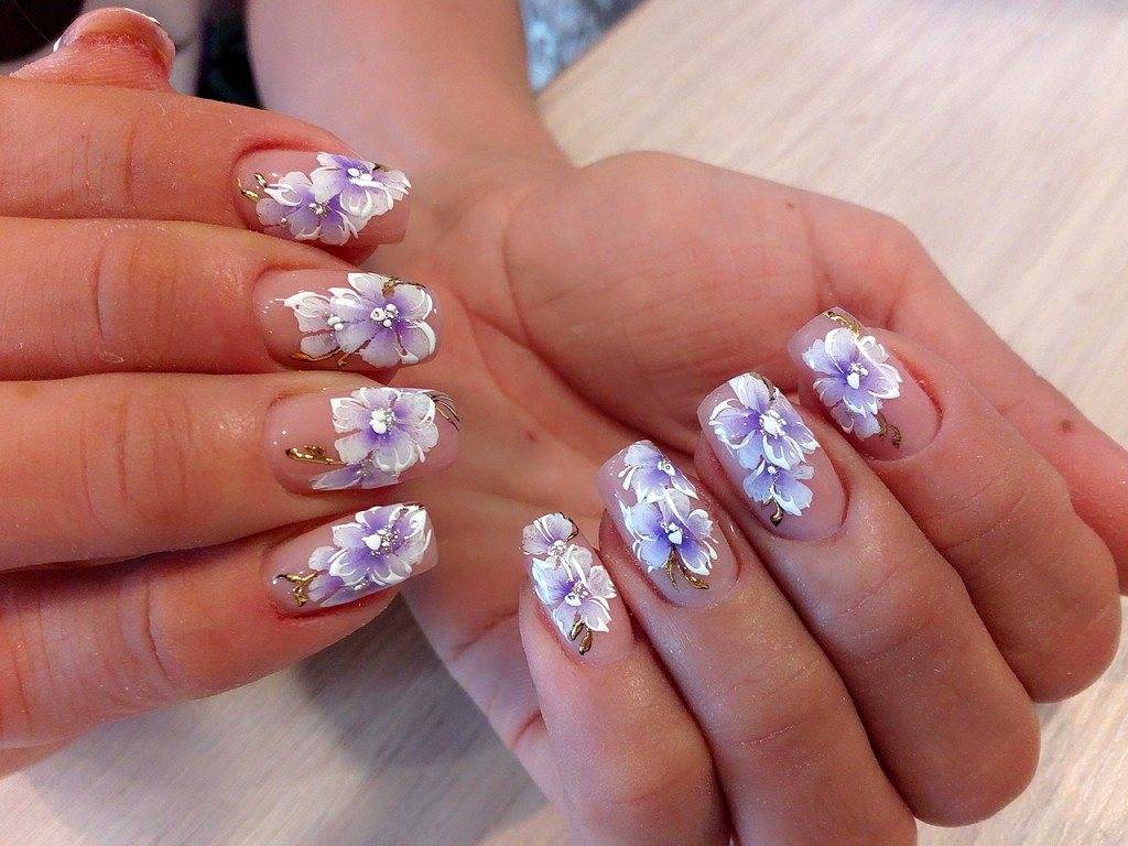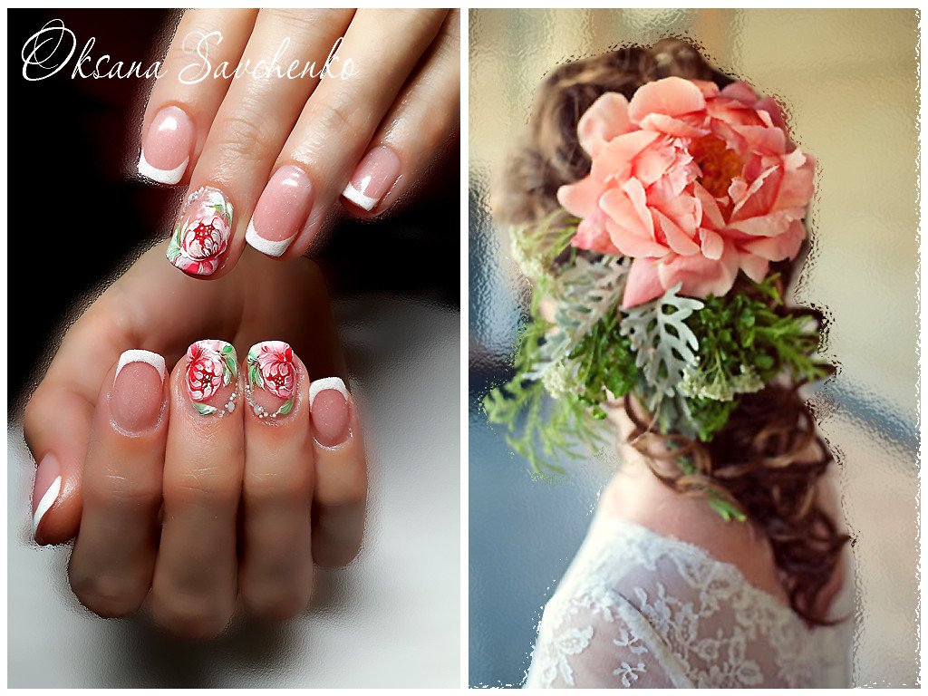 - Свадебная роспись ногтей насыщенных цветов.