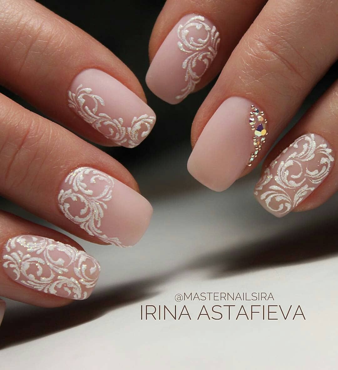 #3 Свадебный маникюр с кружевом 2020