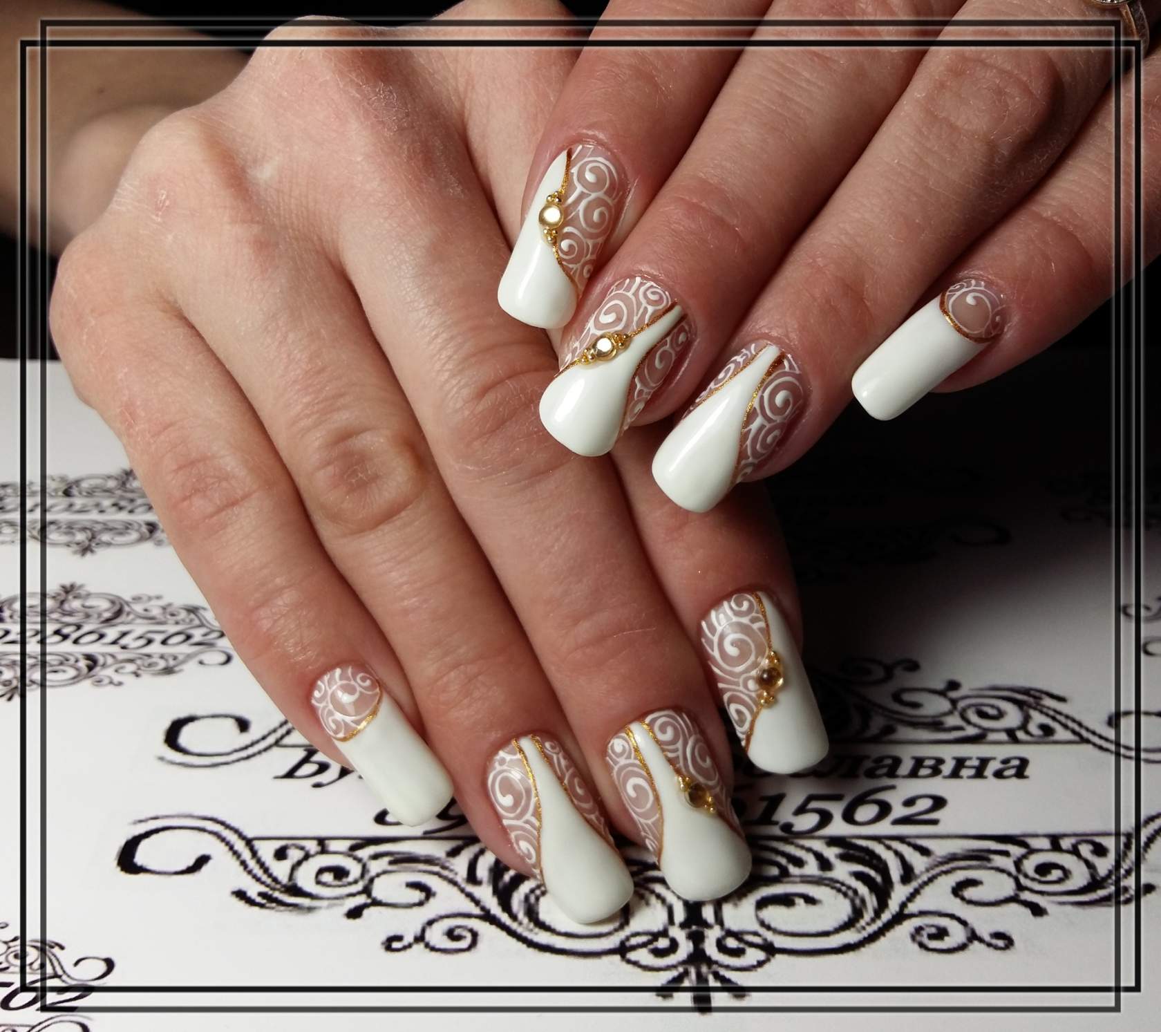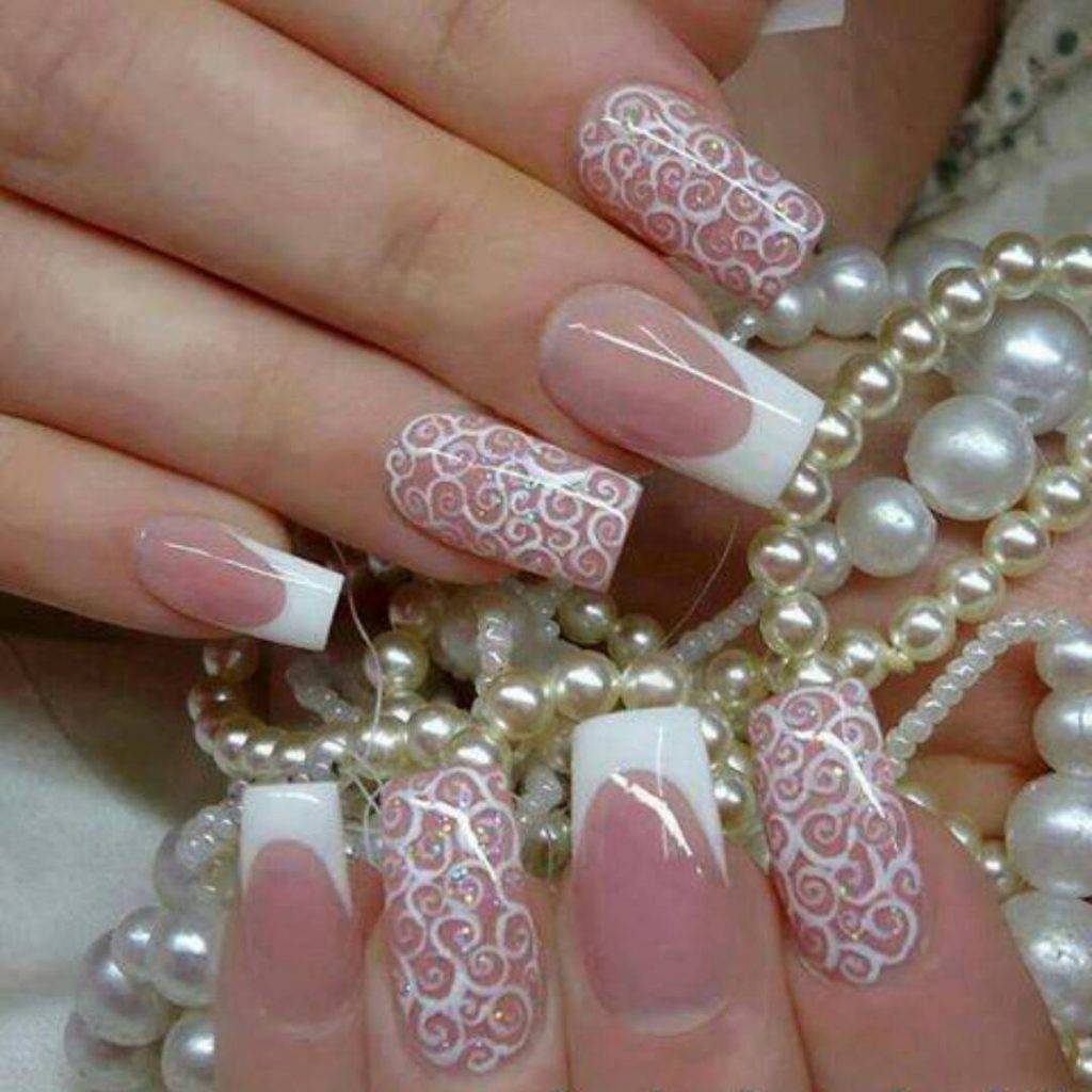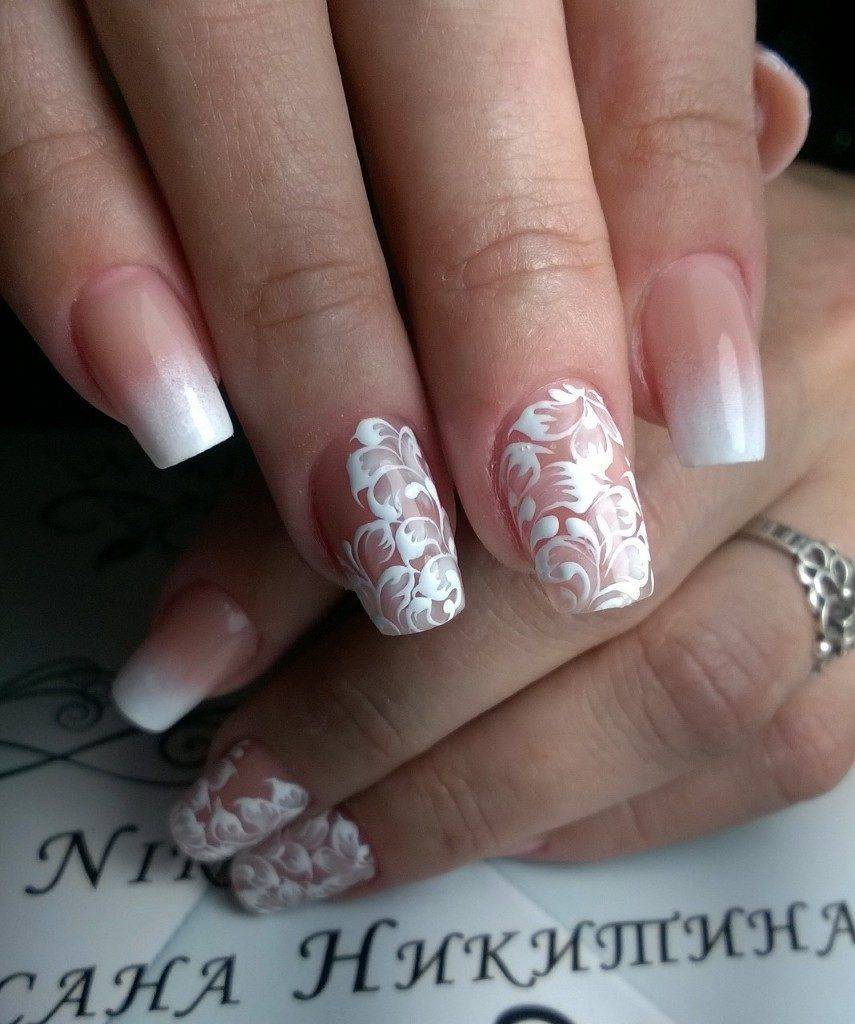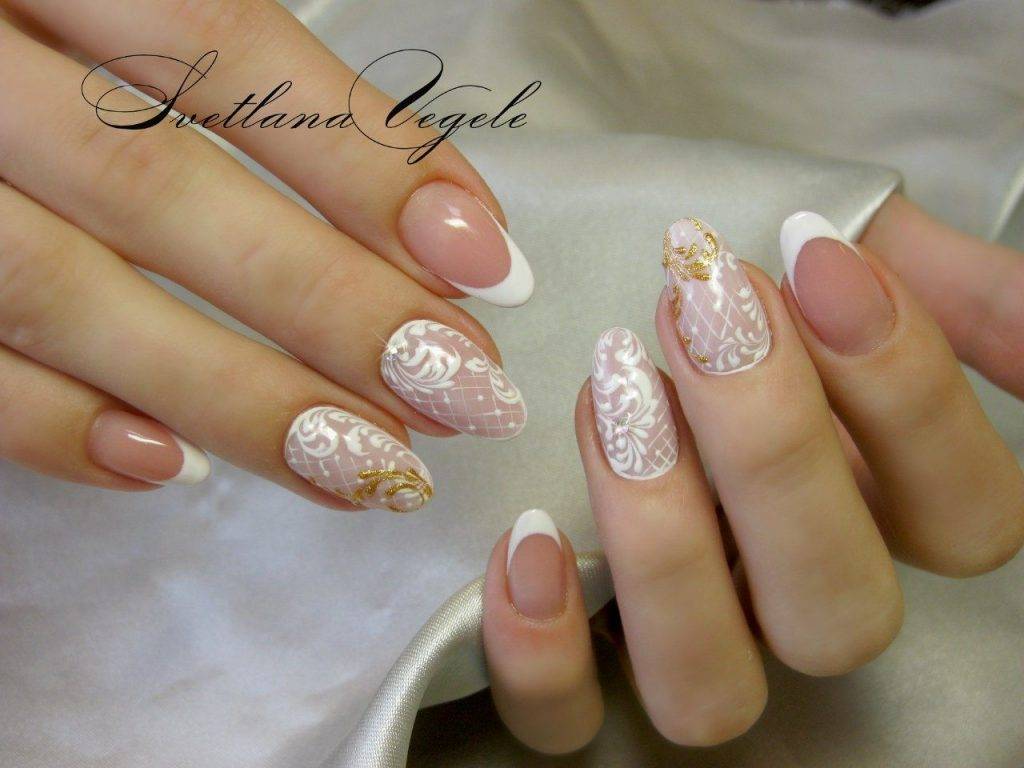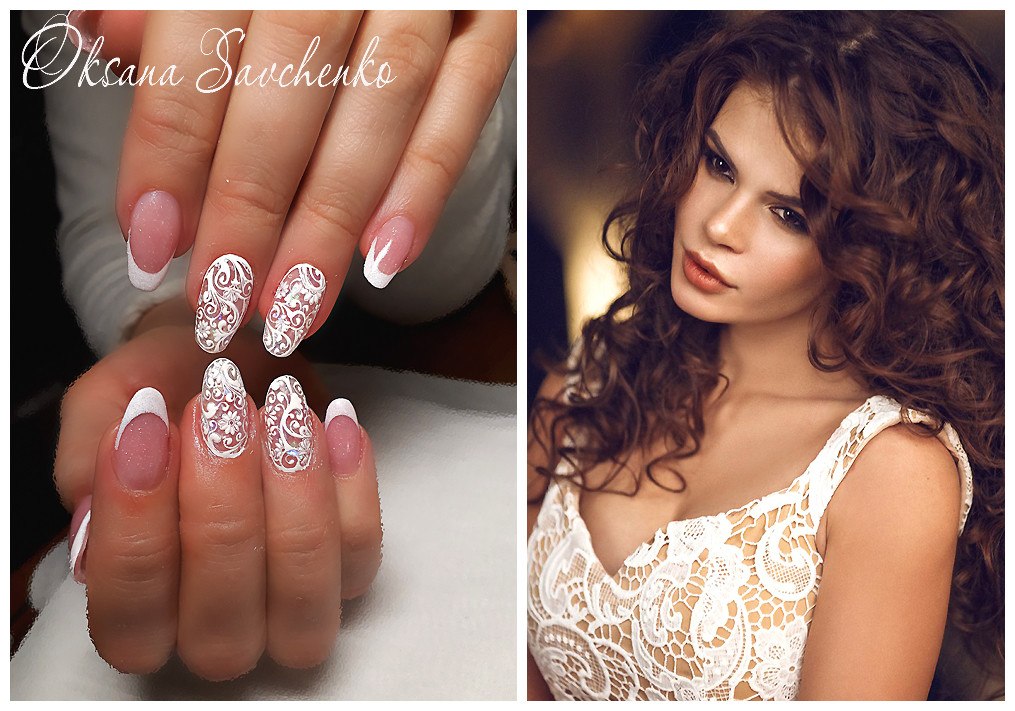 Ногти свадебные, фото, с кружевом.