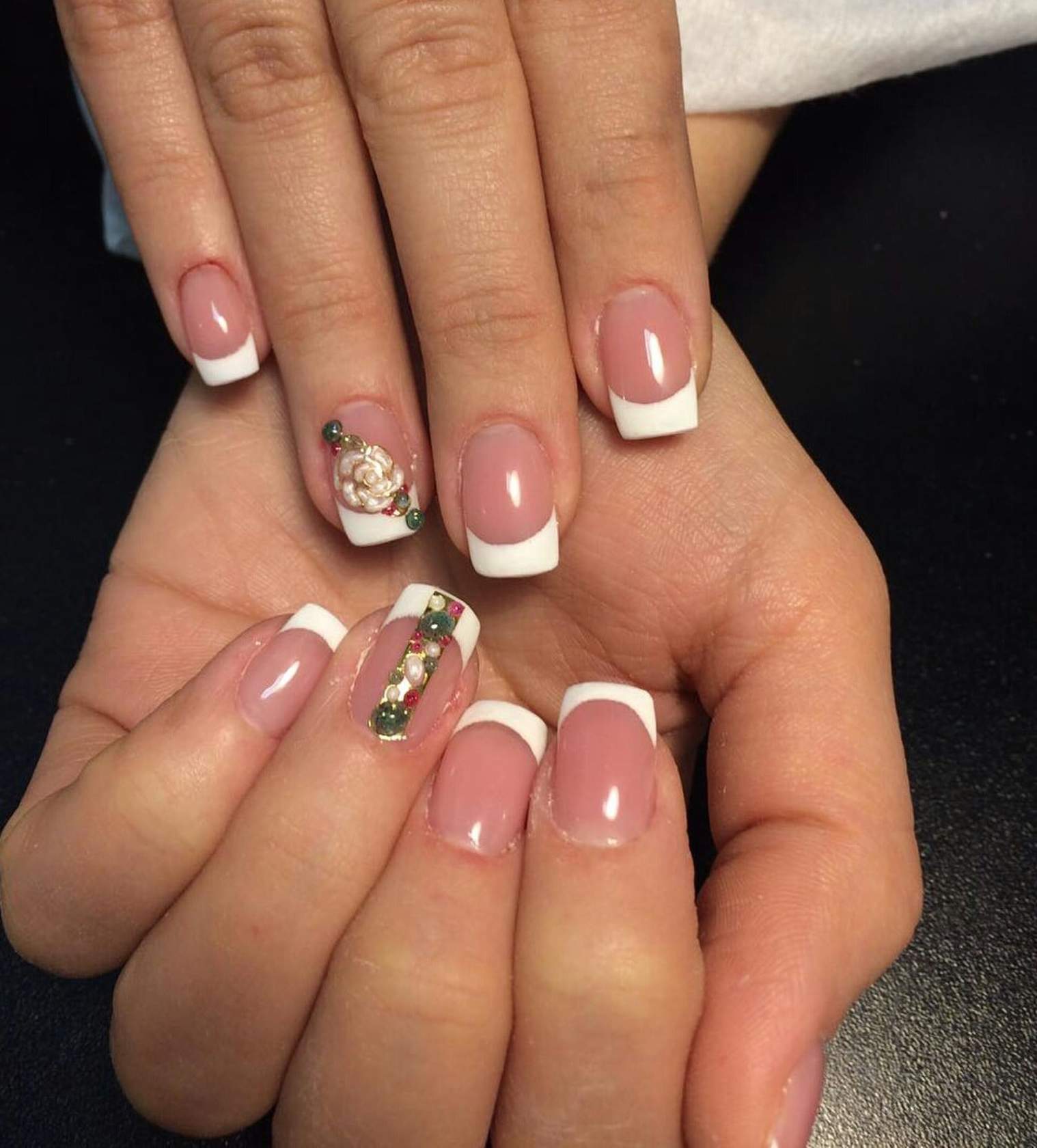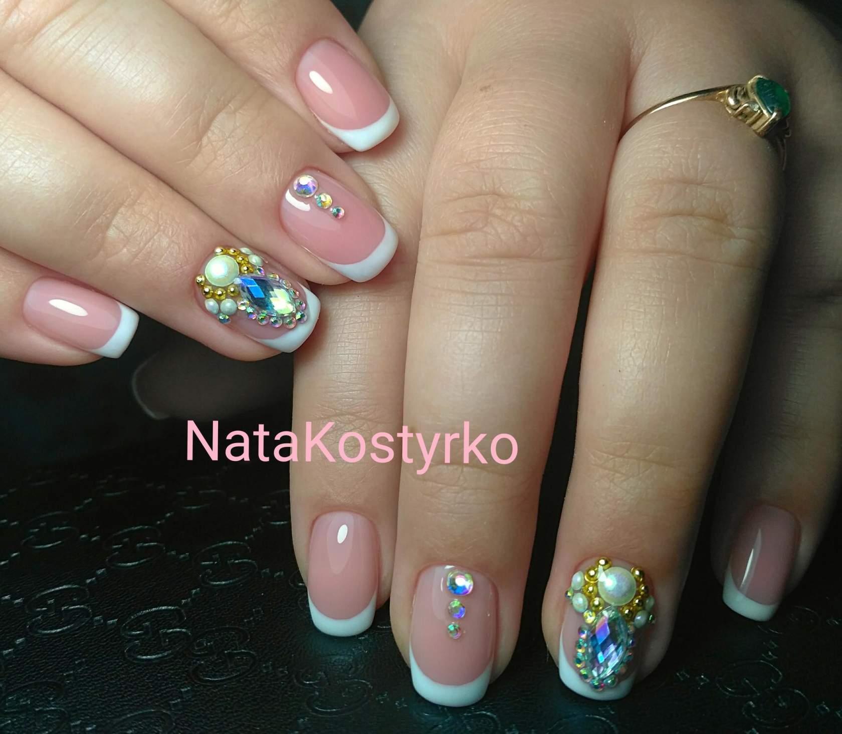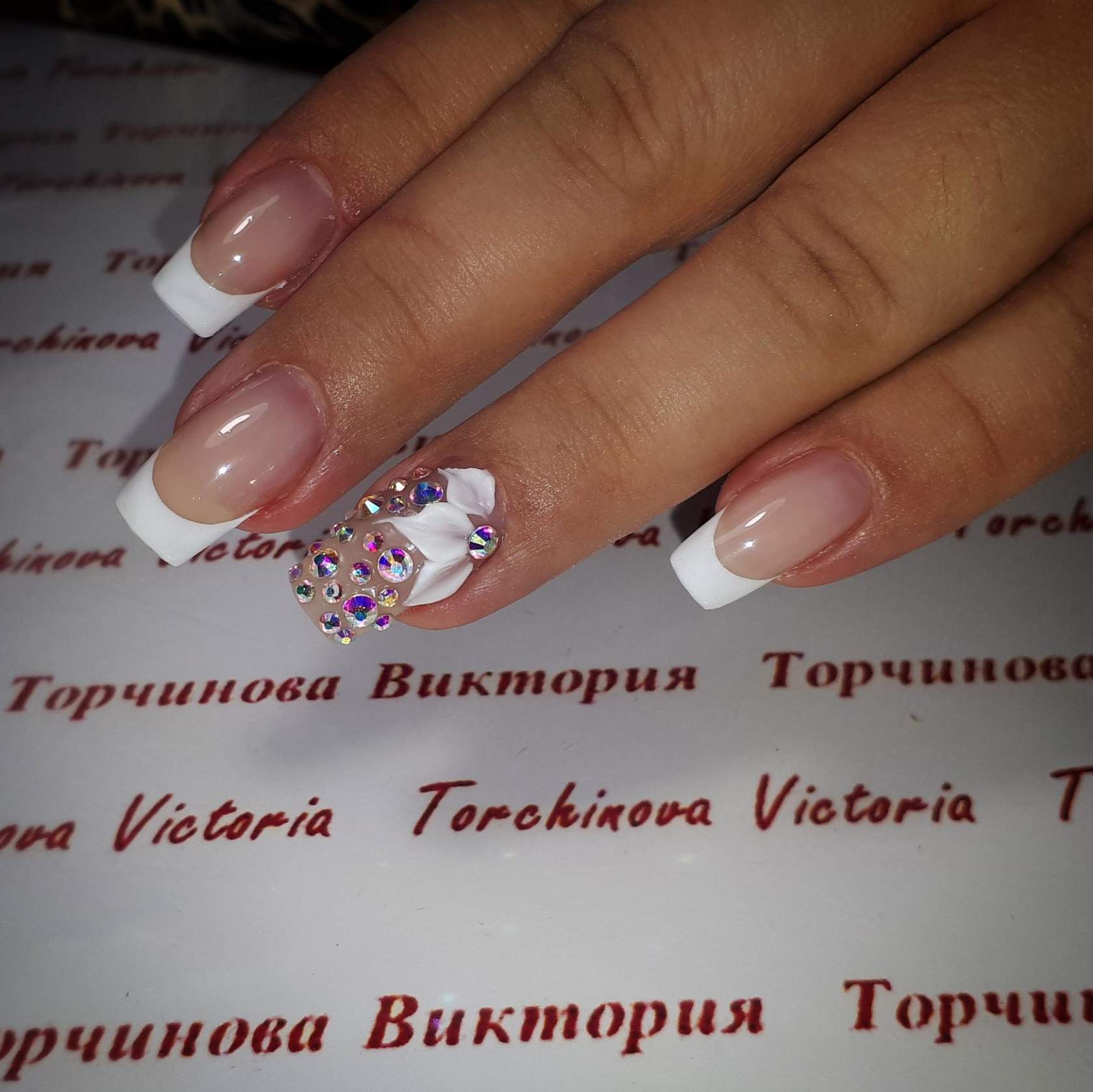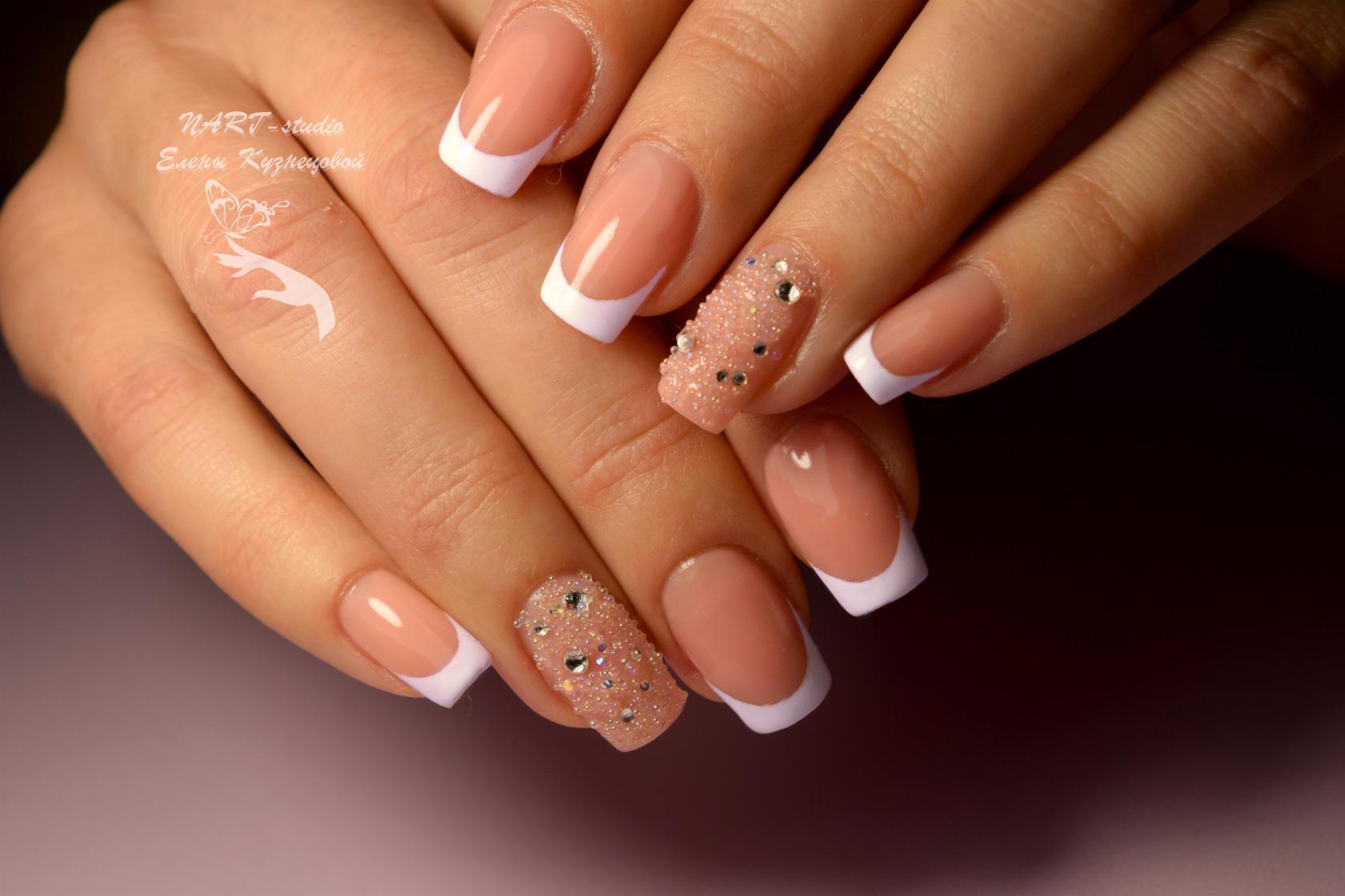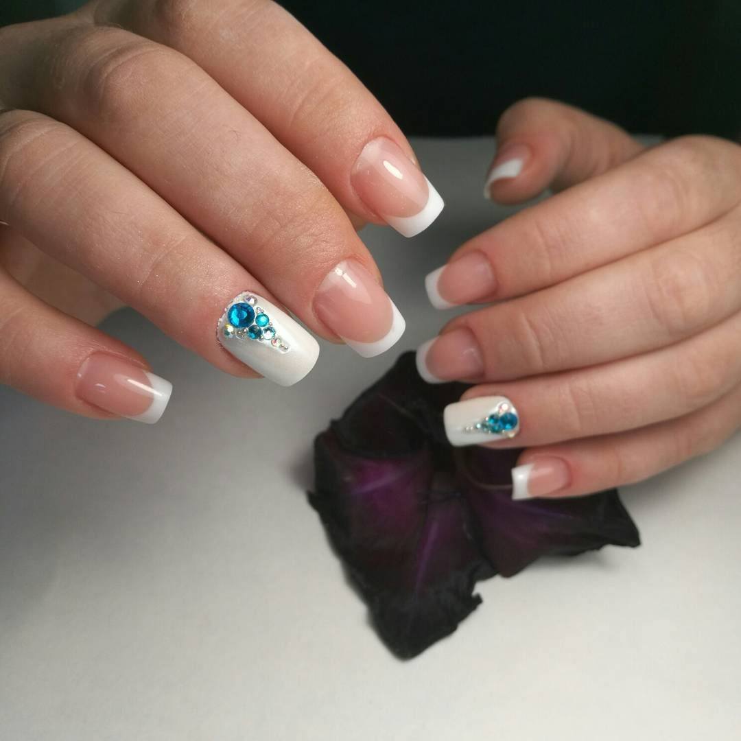 Самым распространённым является французский маникюр со стразами.