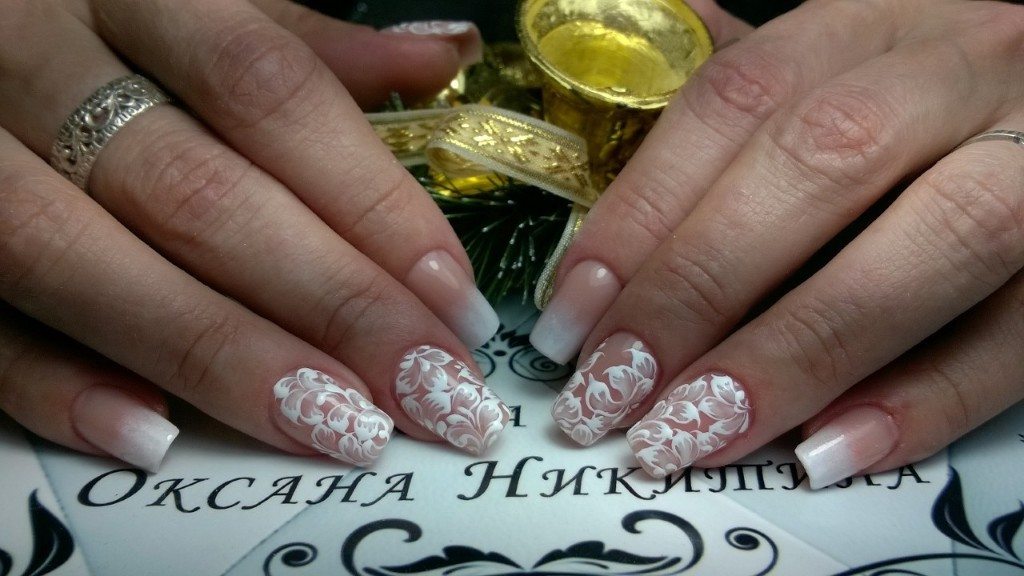Подобный маникюр позволяет добиться женственности и аккуратности в образе. Его часто используют именно невесты. В весенний период он поднимает настроение и позволяет передать романтику этого времени года. Кружева – это очень сложные элементы, поэтому их создание лучше доверить специалистам.