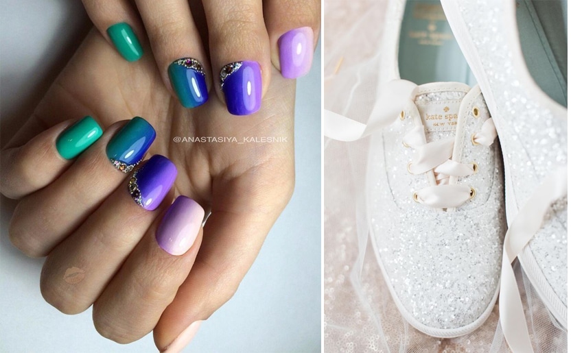В зависимости от длины и формы ногтя, актуальными и стильными трендами в 2017 году будут как традиционные, так и яркие. Если классический белый френч не впишется в образ или же кажется скучным, можно проявить истинную эпатажность и прибегнуть к ярким цветам и причудливым формам. Конечно, это не такой универсальный дизайн свадебного маникюра, как обычный френч, но ведь и свадьба — событие не обыденное!