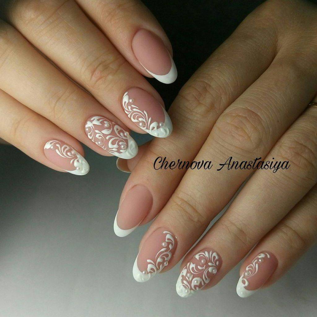 Техники маникюра в белых тонах на острые, закругленный, квадратные ногти.