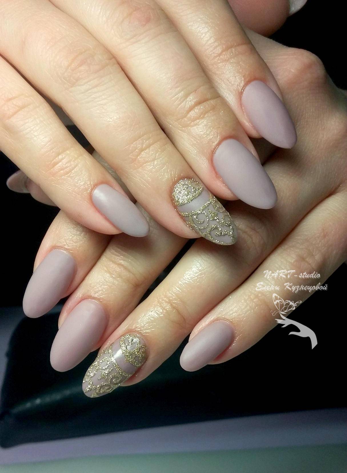 - Лунный маникюр, который сочетает не слишком контрастные оттенки общей гаммы торжества.
