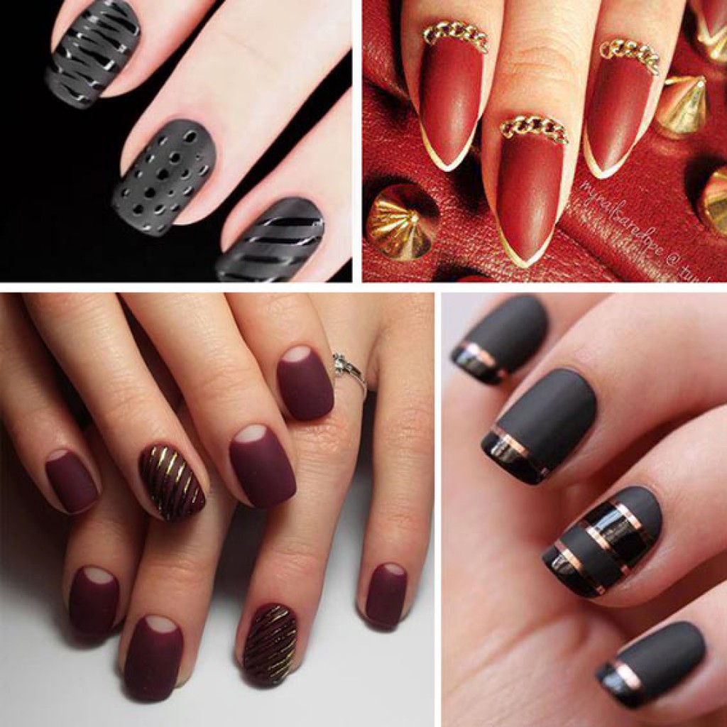 Теперь, когда вы знаете, как можно сделать матовый лак в домашних условиях без лишних затрат, можно пофантазировать на тему красивого «бархатного» маникюра. Вовсе не обязательно делать матовыми все ногти. Чередуйте глянец с песочным эффектом, окрашивая ногти целиком или используя эти фактуры для создания френча. Очень стильно выглядят сочетания матовой лаковой текстуры разных тонов со стразами, кружевные и абстрактные узоры, прорисованные по трафарету на «песчаном» фоне, чередования глиттера с бархатной текстурой и другие смелые решения.