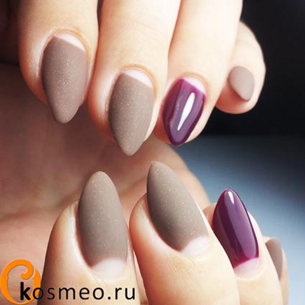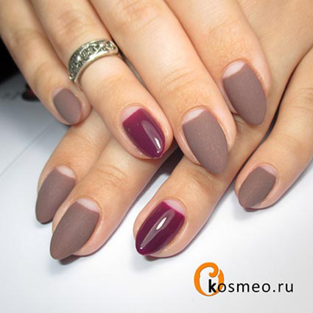 Часто матовая текстура в маникюре используется не полностью на все ногти, как «изюминка» маникюра. Вот примеры: