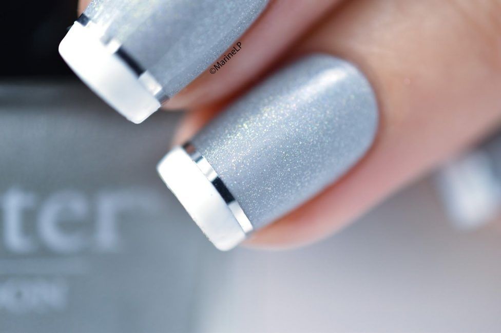 Ее особенность — в оригинальном покрытии, напоминающем зеркало и также отшлифованный, блестящий металл. Оно получается с помощью фольги, специальных наклеек или гель-лаков.