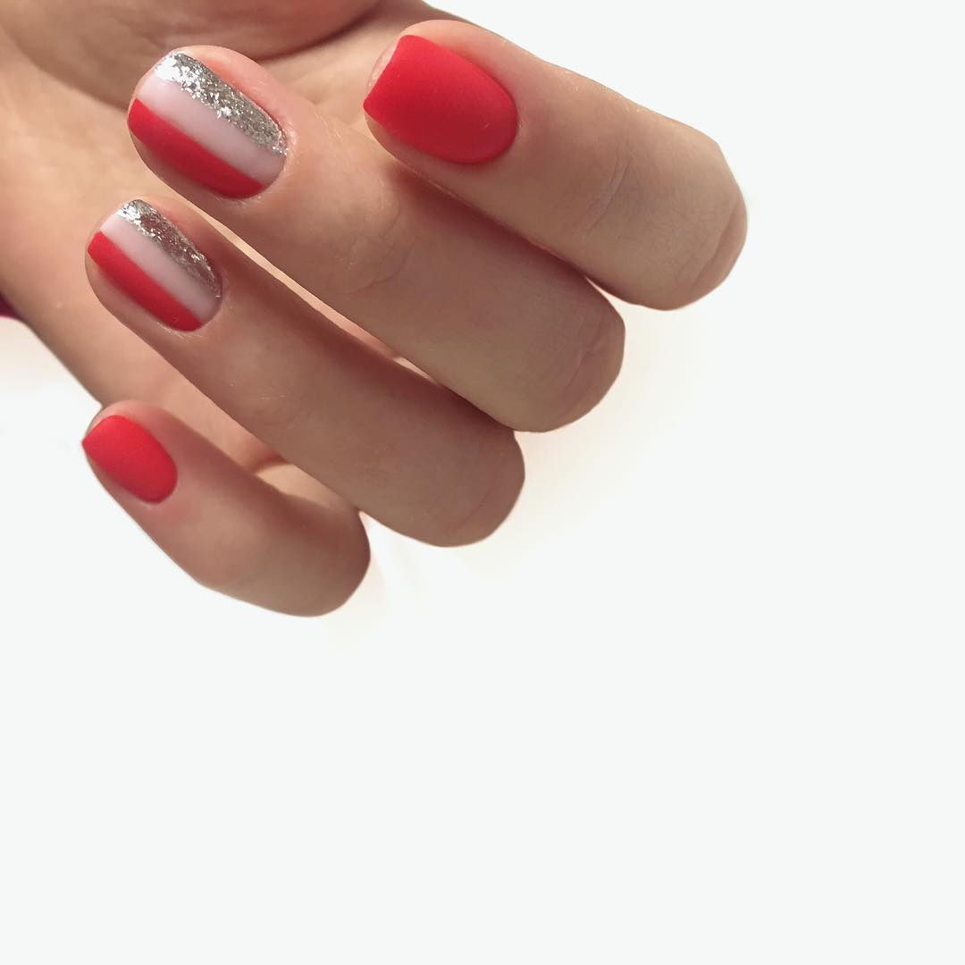 Белое серебро. Еще одна тенденция — это наложение на ноготки серебряной фольги на чисто-белую или молочную основу. Можно использовать как глянцевый, так и матовый. Все зависит от ситуации. Глянец больше подойдет для праздничных мероприятий.