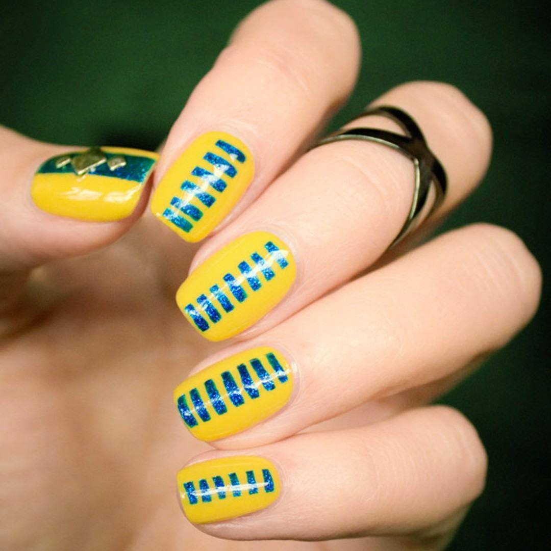 Полосатый маникюр с использованием вертикальных и горизонтальных полос