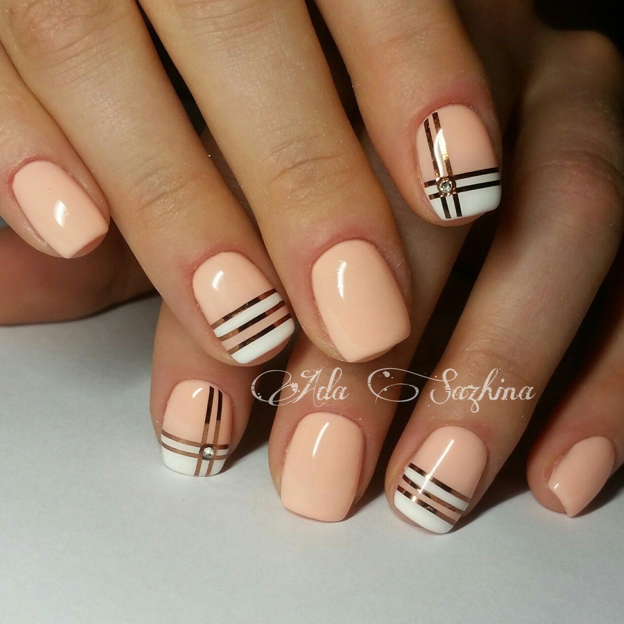 Полосатый маникюр с декором