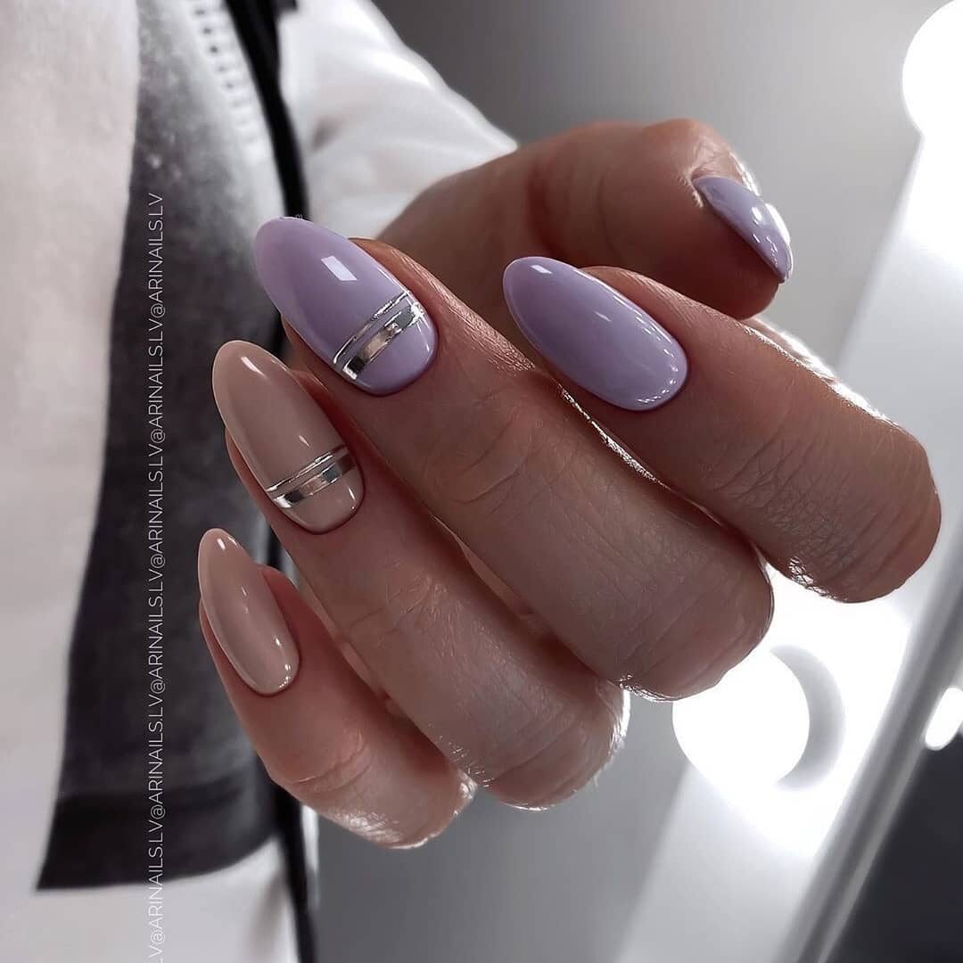 Большим спросом среди простого дизайна ногтей будут пользоваться лаки с металлическим серебристым или золотистым блеском. Такие покрытия будут смотреться стильно в холодное время года в сочетании с матовыми лаками. Данная комбинация безупречно подойдет для длинных ногтей и гармонично дополнит вечерний образ.