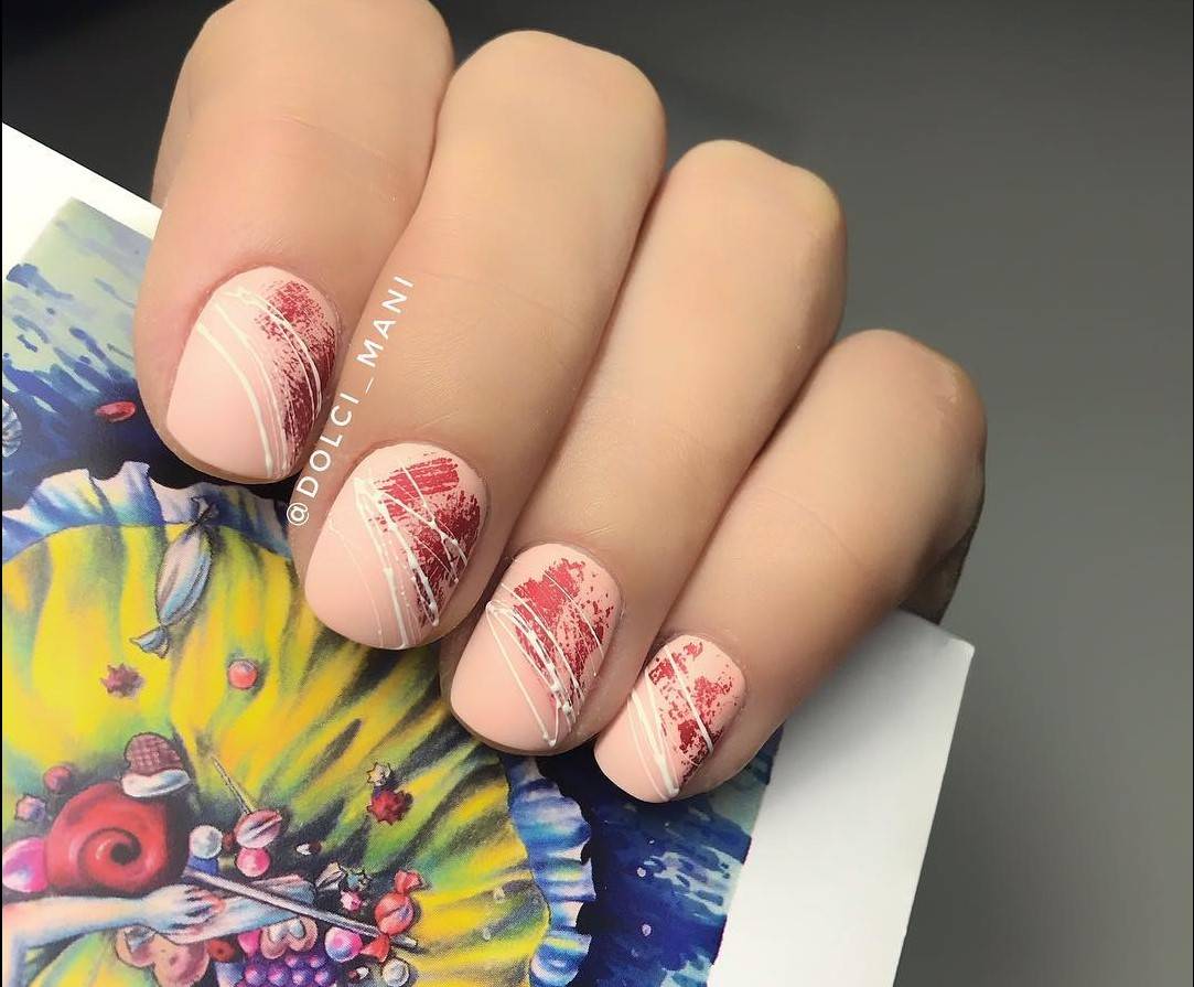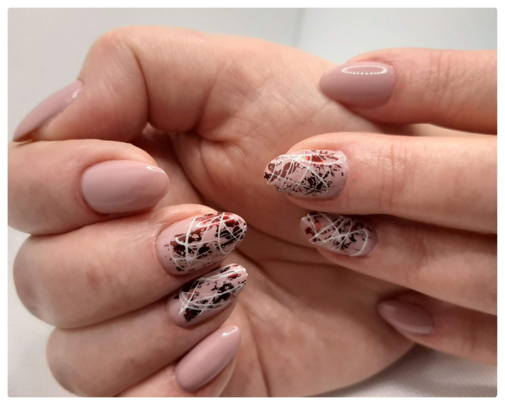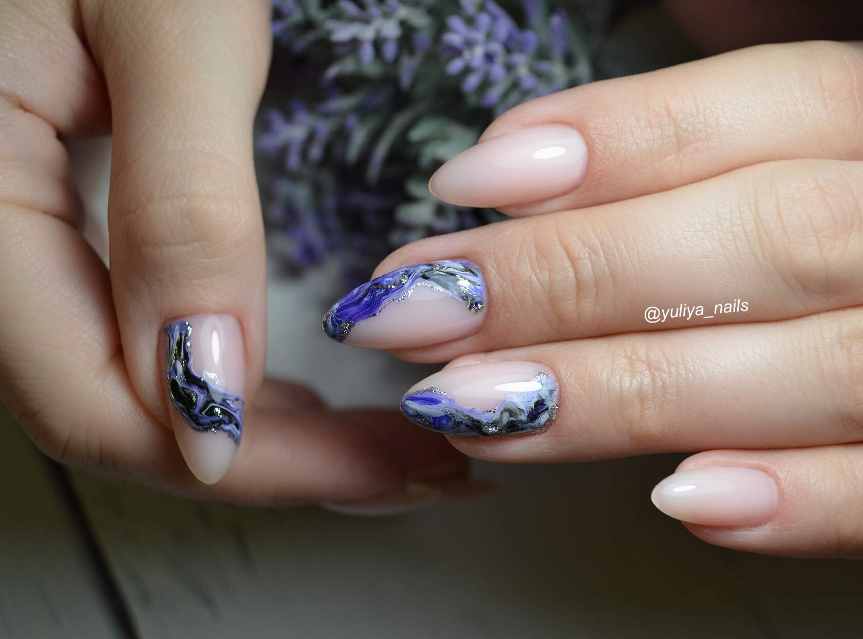 Хит дизайна простых ногтей гель лаком – абстрактные разводы, которые имитируют мрамор или другие ценные камни. Попробуйте нарисовать на ноготках похожие прожилки мрамора, и вы точно окажетесь в тренде.
