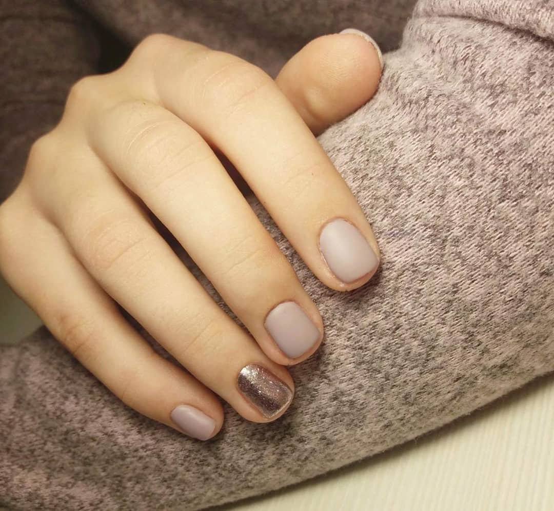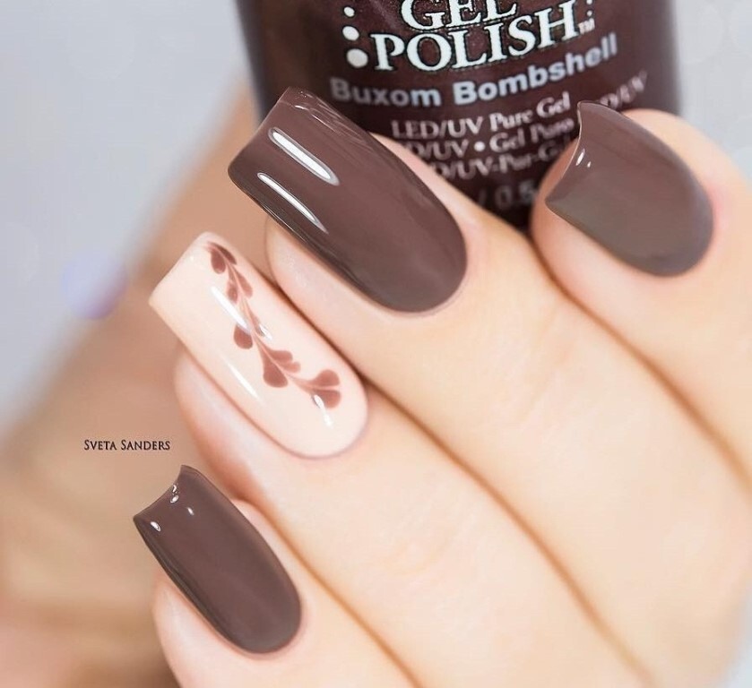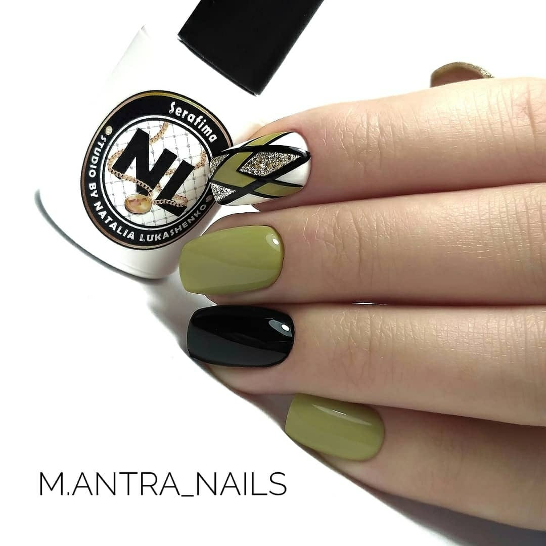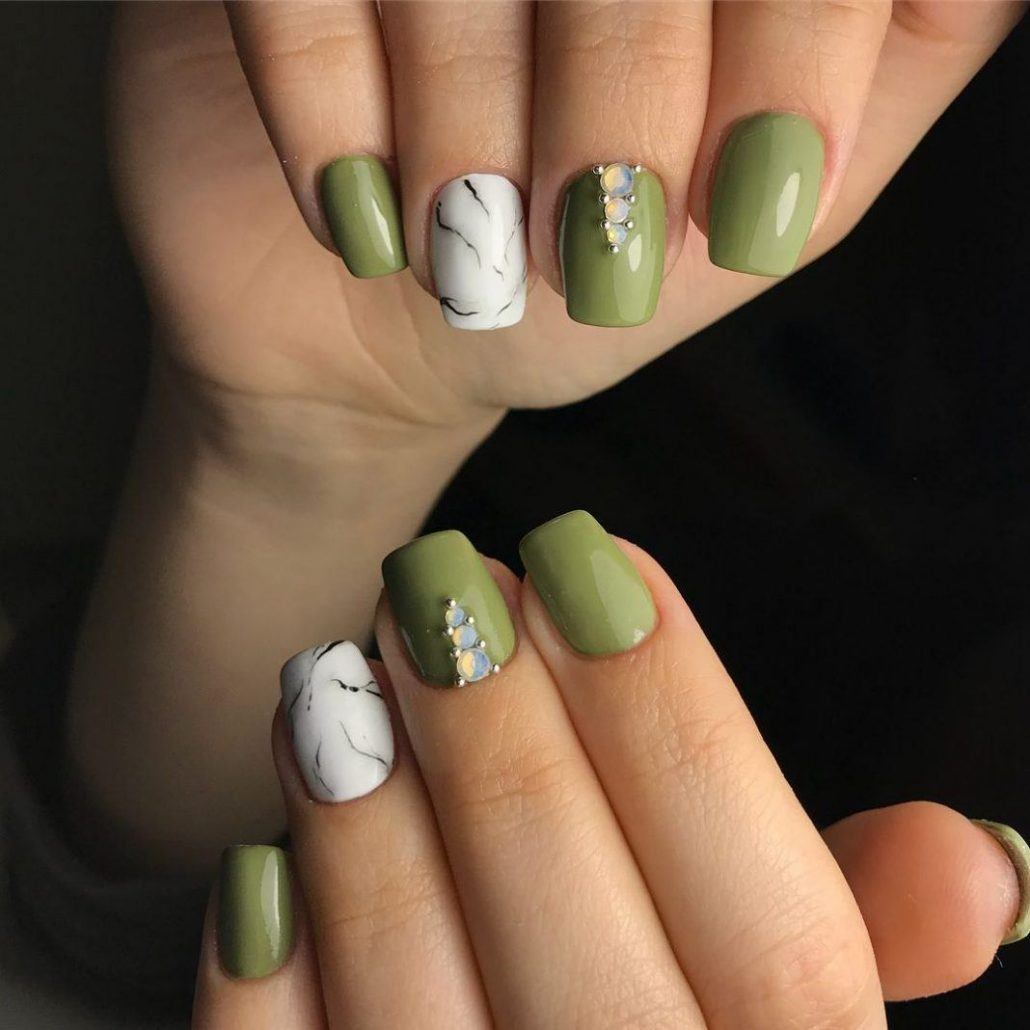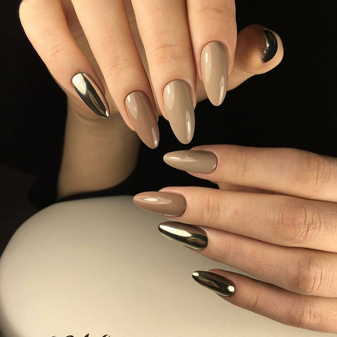 Нейтральный цвет, хорошо смотрящийся на длинных миндалевидных или овальных ногтях. Оливковый маникюр подойдет обладательницам смуглой и загорелой кожи.