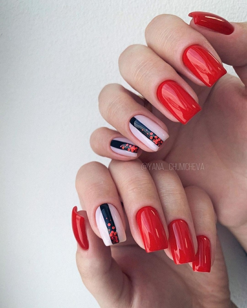 Самый яркий маникюр — красный лак и его возможные оттенки — от ярко-красного до бордового всегда уместны, если вы хотите излучать подлинные женские прелести. Ярко-красный цвет — самый дерзкий, он всегда притягивает взгляды.